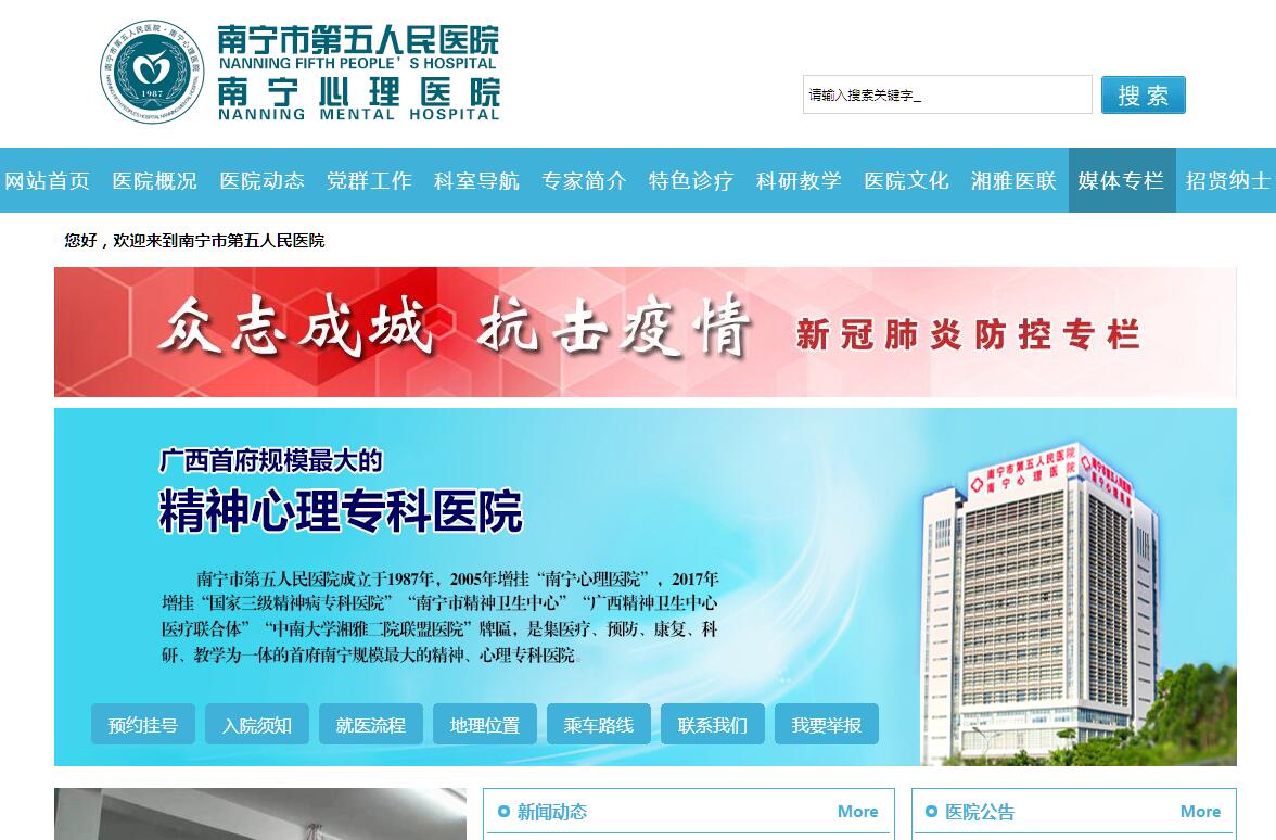 南寧市第五人民醫(yī)院?南寧心理醫(yī)院是廣西唯一的心理衛(wèi)生、精神衛(wèi)生獨(dú)立掛牌的國家三級精神病??漆t(yī)院,承擔(dān)廣西西南部近3000萬人口精神疾病的防治康復(fù)技術(shù)指導(dǎo)。醫(yī)院坐落在廣西首府南寧市東北面的獅山公園景區(qū)(南寧市邕武路7號),占地面積72.5畝,總建筑面積56660㎡,建筑密度為21.3% ,綠地率41.3% 。醫(yī)院環(huán)境幽雅、景色秀美,交通便捷,為廣西三星級綠色環(huán)保醫(yī)院。醫(yī)院成立于1987年,2005年掛牌“南寧心理醫(yī)院”,是廣西首家心理醫(yī)院,是集醫(yī)療、預(yù)防、康復(fù)、科研、教學(xué)為一體的首府南寧規(guī)模最大的精神、心理??漆t(yī)院,是廣西精神衛(wèi)生中心醫(yī)療聯(lián)合體單位、南寧市精神衛(wèi)生中心,南寧精神衛(wèi)生??漆t(yī)療聯(lián)合體牽頭單位,與中南大學(xué)湘雅二醫(yī)院、南寧市第一人民醫(yī)院互為醫(yī)聯(lián)體單位。醫(yī)院是廣西醫(yī)科大學(xué)、廣西中醫(yī)藥大學(xué)臨床教學(xué)醫(yī)院,廣西大學(xué)、廣西師范學(xué)院應(yīng)用心理學(xué)臨床教學(xué)實(shí)習(xí)基地,廣西高等醫(yī)學(xué)院校臨床教學(xué)基地(A級),擔(dān)負(fù)廣西精神、心理衛(wèi)生專業(yè)人員的進(jìn)修培訓(xùn)及各院校的見習(xí)、實(shí)習(xí)等教學(xué)任務(wù)。醫(yī)院擁有首府南寧最優(yōu)秀的??迫瞬藕蛯I(yè)設(shè)備,診療、康復(fù)技術(shù)區(qū)內(nèi)領(lǐng)先,對各類心理、精神疾病有深入的研究,有豐富臨床經(jīng)驗(yàn)和科研成果,醫(yī)療技術(shù)和服務(wù)水平得到社會各界、廣大群眾和患者的高度評價(jià)。醫(yī)院先后榮獲中國百佳百姓信賴的精神衛(wèi)生醫(yī)療服務(wù)機(jī)構(gòu)、自治區(qū)助殘先進(jìn)單位、自治區(qū)衛(wèi)生先進(jìn)單位、自治區(qū)先進(jìn)基層黨組織、自治區(qū)“文明小區(qū)”、“文明庭院”、廣西、南寧市“綠色環(huán)保醫(yī)院”、南寧市文明單位、南寧市綠化先進(jìn)單位、南寧市警民共建先進(jìn)單位等稱號。截止至2017年6月,醫(yī)院在職職工551人,其中專業(yè)技術(shù)人員499人,中、高級技術(shù)職稱者近181人。年收治住院病人6000余人次,年專科門診量達(dá)8萬余人次。醫(yī)院編制床位600張,實(shí)際開放病床600多張,臨床共11個(gè)病區(qū),包括成人精神科病區(qū)、情感障礙病區(qū)、物質(zhì)依賴科、老年精神科、心理科森田病區(qū)、心理科睡眠障礙病區(qū)、兒童青少年心理病區(qū)、康復(fù)醫(yī)學(xué)科等,其中,臨床心理科獲南寧市列為“重點(diǎn)學(xué)科”。心理科、精神科門診開展了精神分裂癥、焦慮癥、神經(jīng)癥、強(qiáng)迫癥、恐怖癥、兒童多動癥、兒童青少年心理行為障礙、心身疾病、性心理障礙、心理咨詢、心理測量、藥物依賴及酒精依賴、老年精神病、癲癇、睡眠障礙和社區(qū)心理應(yīng)急干預(yù)等??茦I(yè)務(wù),還開展了急診科、內(nèi)科、外科、婦科、兒科、口腔科、五官科、中醫(yī)科、康復(fù)中心等綜合業(yè)務(wù)。醫(yī)院同時(shí)擔(dān)負(fù)廣西精神疾病司法鑒定、精神疾病勞動能力評定、精神疾病殘疾評定,為廣西壯族自治區(qū)十佳司法鑒定機(jī)構(gòu)。心理科森田病房以園林生態(tài)模式建造,為醫(yī)院亮麗業(yè)務(wù)名片,集診療、園林、家居為一體,森田療法區(qū)內(nèi)首創(chuàng),國內(nèi)先進(jìn)。醫(yī)院堅(jiān)持以創(chuàng)新意識為先導(dǎo),秉承“仁和、精謹(jǐn)、務(wù)實(shí)、創(chuàng)新”的醫(yī)院精神,堅(jiān)持“人文關(guān)懷、心身致和”的服務(wù)理念,加強(qiáng)內(nèi)涵建設(shè),強(qiáng)化科學(xué)管理,突出??铺厣?,以一流技術(shù)和服務(wù),為患者提供了一個(gè)優(yōu)美、溫馨、安全、舒適的診療康復(fù)環(huán)境。