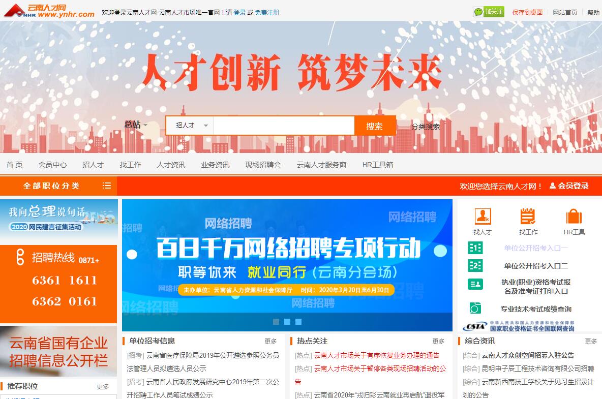 云南人才網(wǎng)-云南人才市場唯一官網(wǎng)。云南人才市場是云南省人力資源和社會(huì)保障廳直屬事業(yè)單位, 是云南省最成熟、最權(quán)威、規(guī)模最大的政府人力資源專業(yè)服務(wù)機(jī)構(gòu)。目前,市場有兩塊牌子,中國云南企業(yè)經(jīng)營管理人才市場(原人事部與云南省人民政府共同組建的區(qū)域性人才市場)和云南人才市場。市場建有云南省人才眾創(chuàng)空間、云南省人力資源開發(fā)創(chuàng)業(yè)園。上世紀(jì)末期,市場就在五華山、園林大廈等地舉辦招聘會(huì),2004年經(jīng)編辦正式批準(zhǔn)單列云南人才市場。多年來,在云南省人力資源和社會(huì)保障廳歷屆黨組的堅(jiān)強(qiáng)領(lǐng)導(dǎo)下,在市場全體員工的共同努力下,現(xiàn)已成為全省乃至全國人才服務(wù)行業(yè)較有影響力的知名品牌。市場始終堅(jiān)持“以人為本、服務(wù)社會(huì)”的宗旨,以企業(yè)和人才需求為導(dǎo)向,按照專業(yè)化、信息化、產(chǎn)業(yè)化發(fā)展思路,逐步發(fā)展形成了覆蓋人力資源服務(wù)全方位的完整的服務(wù)體系,服務(wù)范圍覆蓋了黨政機(jī)關(guān)、部隊(duì)、國有事業(yè)企業(yè)單位和非公有經(jīng)濟(jì)企業(yè),服務(wù)人群廣泛。市場積極發(fā)揮省級(jí)人才市場的輻射和示范作用以強(qiáng)有力的政府保障體系、完善的服務(wù)功能、為促進(jìn)就業(yè)人才優(yōu)化配置、引領(lǐng)行業(yè)健康發(fā)展、推動(dòng)我省經(jīng)濟(jì)社會(huì)發(fā)展、帶動(dòng)人力資源服務(wù)業(yè)發(fā)展作出了積極貢獻(xiàn)。云南人才市場內(nèi)設(shè)部門8個(gè):綜合部、財(cái)務(wù)部、信息部、營銷部、人才評(píng)價(jià)部、培訓(xùn)部、人事代理部、社保工作站;兩家機(jī)構(gòu):云南潤滇職業(yè)培訓(xùn)學(xué)校、云南人力資源開發(fā)中心職業(yè)培訓(xùn)站。