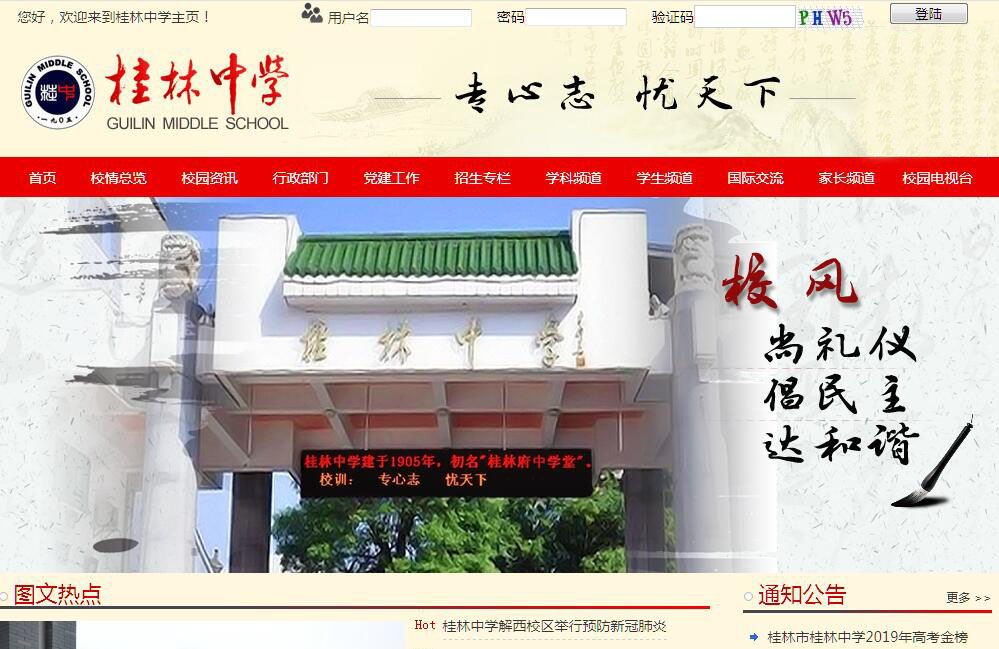 桂林中學(xué)是廣西壯族自治區(qū)首批確定的重點中學(xué)和首批示范性普通高中,是桂林市首批對外開放學(xué)校。學(xué)校位于桂林市解放西路,占地面積49302平方米,校舍建筑面積25988平方米,現(xiàn)任校長馬勁。桂林中學(xué)始建于1905年,初名“廣西桂林府中學(xué)堂”,1912年更名為“廣西桂林中學(xué)?!保浜?,因?qū)W制更動,隸屬關(guān)系變化和幾校分合等原因,先后使用過“廣西省立第三中學(xué)?!?,“廣西省立第三高級中學(xué)”,“廣西省立桂林高級中學(xué)”,“廣西省立桂林中學(xué)”,“桂林高中”,“廣西省桂林中學(xué)”等名稱,1959年改名為“桂林中學(xué)”,2004年更名為“桂林市桂林中學(xué)”。桂林中學(xué)以“專心志,憂天下”為校訓(xùn),以“貫徹方針,全面育人”為辦學(xué)理念,以“培養(yǎng)有素養(yǎng)的現(xiàn)代中國人”為育人目標(biāo),以“尚禮儀、倡民主、達(dá)和諧”為校風(fēng),以“重修身、善教化、勇創(chuàng)新”為教風(fēng),以“學(xué)主動、思深刻、志高遠(yuǎn)”為學(xué)風(fēng)。學(xué)校在課程改革、校園文化建設(shè)等方面取得了豐碩成果,在自治區(qū)內(nèi)外有重要影響,在全國重點高校之中有著良好的聲譽(yù)。桂林中學(xué)榮獲“全國德育先進(jìn)?!薄叭珖瀼伢w育條例先進(jìn)學(xué)校”“國家級語言文字規(guī)范化示范?!薄皬V西(首批)示范學(xué)?!薄皬V西普通高中課程改革樣本學(xué)?!薄皬V西衛(wèi)生優(yōu)秀學(xué)?!薄皬V西中小學(xué)校園文化建設(shè)先進(jìn)學(xué)?!钡葮s譽(yù)稱號,學(xué)校辦學(xué)業(yè)績先后載入《中國教育年鑒》、《中國著名中學(xué)》、《中國名?!返戎袊逃浼小9鹆种袑W(xué)有著較長的辦學(xué)歷史,有良好的校風(fēng)、教風(fēng)和學(xué)風(fēng),有較高的教育教學(xué)質(zhì)量。一百多年來,培養(yǎng)了50000余名畢業(yè)生。校友遍及海內(nèi)外,他們中的杰出代表有中國科學(xué)院院士李林、雷嘯霖、童慶禧、中國工程院院士黃旭華、“武俠小說之父”梁羽生、神5中國載人航天工程航天員系統(tǒng)總指揮兼總設(shè)計師宿雙寧、現(xiàn)任中國人民解放軍空軍副司令員鄭群良、現(xiàn)任公安部部長助理劉躍進(jìn)、華為技術(shù)有限公司副總裁、首席法務(wù)官宋柳平、央視著名主持人歐陽夏丹等。桂林中學(xué)現(xiàn)有高中班31個,初中班6個,在校學(xué)生1900多人。教職工共158人,其中專任教師136人。教師中有:特級教師9人,高級教師70人,全國骨干教師4人,桂林市學(xué)科帶頭人和教學(xué)能手30人,已取得研究生學(xué)歷或教育碩士學(xué)位32人。教師中取得高、中級職稱者占總數(shù)的92%。近年,桂林中學(xué)打造以“知禮,知恩,知學(xué),知法”為核心的課程體系,通過實施全方位的課程,滲透素質(zhì)教育,不斷深化教育改革。今年,按照市委市政府的“補(bǔ)齊教育短板,提升我市公辦初中教學(xué)質(zhì)量”的要求,在市教育局的領(lǐng)導(dǎo)下,在桂林市師范專科學(xué)校的大力支持下,借用師專信義校區(qū)恢復(fù)了桂林中學(xué)初中部招生,今年招收了初一新生300多名,在一定程度上緩解了桂林市區(qū)初中學(xué)位緊張的問題,今后桂林中學(xué)決心在市教育局的領(lǐng)導(dǎo)下,潛心鉆研,為進(jìn)一步提升教育教學(xué)質(zhì)量作出自己應(yīng)有的努力。