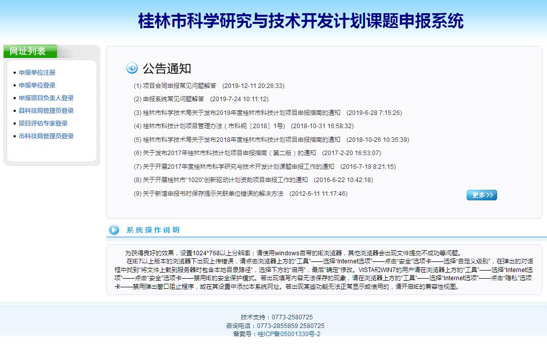 | 網(wǎng)站名稱: | 桂林市科學(xué)研究與技術(shù)開發(fā)計(jì)劃課題申報(bào)系統(tǒng) | ||
