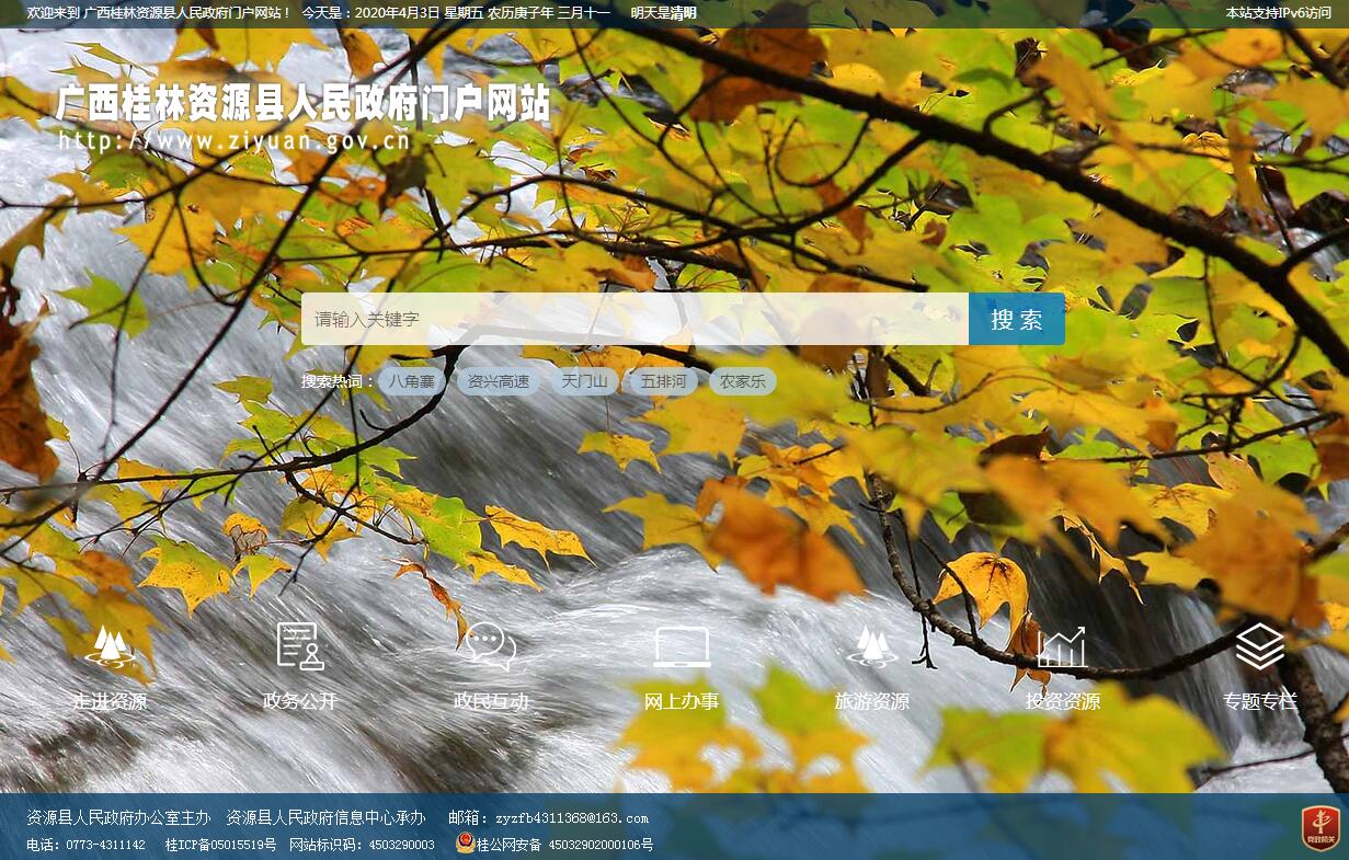| 網(wǎng)站簡(jiǎn)介: 資源縣位于廣西壯族自治區(qū)東北部越城嶺山脈腹地,是廣西的北大門,屬桂林市管轄,距桂林市區(qū)98公里,界于東經(jīng)110°13′——110°54′、北緯25°48′—26°16′之間。東面、南面、西南面分別與全州縣、興安縣、龍勝縣毗鄰,西面、北面分別與湖南省城步苗族自治縣、新寧縣交界。境內(nèi)有華南第一高峰貓兒山,是長(zhǎng)江水系和珠江水系的發(fā)源地之一。資源縣東西橫距65.5公里,南北縱距63.4公里,總面積1941.01平方公里,是一個(gè)少數(shù)民族聚居縣。全縣轄資源鎮(zhèn)、中峰鎮(zhèn)、梅溪鎮(zhèn)、瓜里鄉(xiāng)、車田苗族鄉(xiāng)、兩水苗族鄉(xiāng)、河口瑤族鄉(xiāng)等四鄉(xiāng)三鎮(zhèn),共74個(gè)村(街)委。截止2018年底,全縣總?cè)丝?8.1萬(wàn)人,其中有苗、瑤、壯、侗、回、蒙古、彝、朝鮮、滿、土家、毛南、么佬、仡佬、黎等14個(gè)少數(shù)民族,少數(shù)民族人口3.91萬(wàn)人,占全縣總?cè)丝诘?1.69%。近年來(lái),資源縣先后榮獲“全國(guó)造林綠化先進(jìn)單位”、“全國(guó)掃除文盲先進(jìn)縣”、“全國(guó)綠化模范單位”、“全國(guó)林業(yè)公安基層建設(shè)先進(jìn)單位”、“全國(guó)學(xué)雷鋒先進(jìn)集體”、“全國(guó)行政區(qū)域界限管理工作先進(jìn)集體”、“全國(guó)村務(wù)公開民主管理示范縣”、“全國(guó)婚姻登記規(guī)范化管理示范窗口單位”、“全國(guó)科技進(jìn)步考核先進(jìn)縣”、“全國(guó)殘疾人工作先進(jìn)單位”等榮譽(yù)。1995年被自治區(qū)人民政府確定為享受少數(shù)民族自治縣待遇。2005年被《中國(guó)國(guó)家地理》雜志評(píng)為中國(guó)最美的地方之一。2007年,被國(guó)家環(huán)保部正式命名為“國(guó)家級(jí)生態(tài)建設(shè)示范區(qū)”。2012年,被國(guó)家發(fā)改委、財(cái)政部、林業(yè)局確定為“全國(guó)生態(tài)文明示范工程試點(diǎn)縣”。2013年,資源縣水產(chǎn)畜牧獸醫(yī)局獲得第七批桂林市“精神文明單位”稱號(hào)。2014年憑借獨(dú)特的旅游資源優(yōu)勢(shì)、良好的生態(tài)環(huán)境及深厚的文化底蘊(yùn),榮登“2014最美中國(guó)榜”,榮獲了“最美中國(guó)·文化旅游、生態(tài)旅游、特色旅游目的地城市的稱號(hào)。民俗節(jié)慶品牌——“七月半”民族傳統(tǒng)河燈歌節(jié)被國(guó)家旅游局列為“中國(guó)百姓生活游”十大主題之一,2014年成功入選為國(guó)家非物質(zhì)文化遺產(chǎn)。2018年,成功創(chuàng)建八角寨、資江·天門山、資江燈谷3個(gè)國(guó)家4A級(jí)景區(qū),八角寨、腳古沖被評(píng)為自治區(qū)級(jí)生態(tài)旅游示范區(qū),豐綠生態(tài)園、李洞分別榮獲廣西5星級(jí)、4星級(jí)鄉(xiāng)村旅游區(qū)稱號(hào),以優(yōu)異成績(jī)成功創(chuàng)建廣西特色旅游名縣;同時(shí),資源縣還是2011-2020年國(guó)家重點(diǎn)扶持的滇桂黔石漠化區(qū)(廣西)區(qū)域發(fā)展與扶貧攻堅(jiān)規(guī)劃的29個(gè)縣之一,也是自治區(qū)級(jí)貧困縣。2018年全年地區(qū)生產(chǎn)總值增長(zhǎng)7.1%,財(cái)政收入增長(zhǎng)7%,固定資產(chǎn)投資增長(zhǎng)14.6%,社會(huì)消費(fèi)品零售總額增長(zhǎng)9.8%,城鎮(zhèn)居民人均可支配收入增長(zhǎng)7.2%,農(nóng)村居民人均可支配收入增長(zhǎng)10.6%。2019年4月24日,廣西壯族自治區(qū)人民政府批復(fù)同意資源縣脫貧摘帽。 |