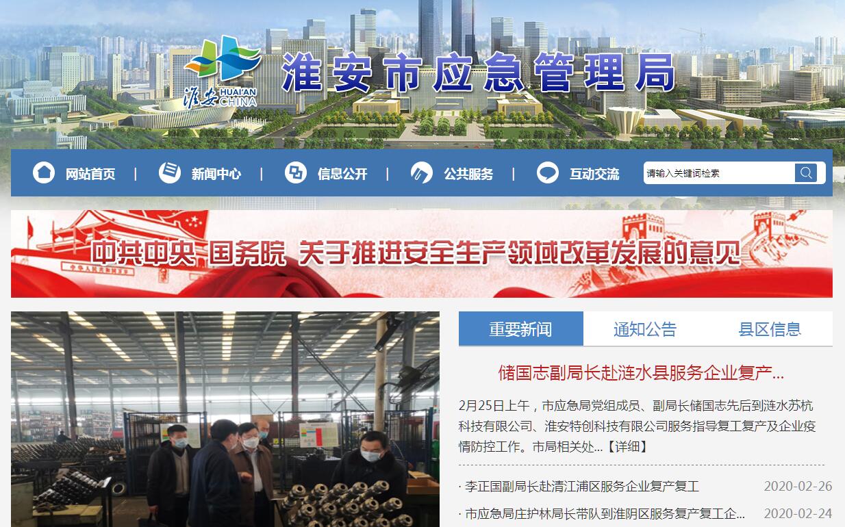 淮安市應急管理局主要職責:(一)負責應急管理工作,指導全市各級各部門應對安全生產(chǎn)類、自然災害類等突發(fā)事件和綜合防災減災救災工作。負責安全生產(chǎn)綜合監(jiān)督管理和工礦商貿(mào)行業(yè)安全生產(chǎn)監(jiān)督管理工作。(二)擬訂應急管理、安全生產(chǎn)等政策規(guī)定,組織編制市應急體系建設、安全生產(chǎn)和綜合防災減災規(guī)劃,起草相關(guān)政策規(guī)定,組織制定相關(guān)規(guī)程、標準并監(jiān)督實施。(三)指導應急預案體系建設,建立完善事故災難和自然災害分級應對制度,組織編制市總體應急預案和安全生產(chǎn)類、自然災害類專項預案,綜合協(xié)調(diào)應急預案銜接工作,組織開展預案演練,推動應急避難設施建設。(四)牽頭建立統(tǒng)一的應急管理信息系統(tǒng),負責信息傳輸渠道的規(guī)劃和布局,建立監(jiān)測預警和災情報告制度,健全自然災害信息資源獲取和共享機制,依法統(tǒng)一發(fā)布災情。(五)組織指導協(xié)調(diào)安全生產(chǎn)類、自然災害類等突發(fā)事件應急救援,承擔市應對重大災害指揮部工作,綜合研判突發(fā)事件發(fā)展態(tài)勢并提出應對建議,協(xié)助市委、市政府指定的負責同志組織重大災害應急處置工作。(六)統(tǒng)一協(xié)調(diào)指揮各類應急專業(yè)隊伍,建立應急協(xié)調(diào)聯(lián)動機制,推進指揮平臺對接。提請、銜接解放軍和武警部隊參與應急救援工作。(七)統(tǒng)籌應急救援力量建設,負責消防、森林火災撲敕、抗洪搶險、地震和地質(zhì)災害救援、生產(chǎn)安全事故救援等專業(yè)應急救援力量建設。指導綜合性應急救援隊伍、各級各部門及社會應急救援力量建設。(八)負責消防管理工作,指導全市各級消防監(jiān)督、火災預防、火災撲救等工作。(九)指導協(xié)調(diào)森林火災、水旱災害、地震和地質(zhì)災害等防治工作,負責自然災害綜合監(jiān)測預警工作,指導開展自然災害綜合風險評估工作。(十)組織協(xié)調(diào)災害救助工作。組織指導災情核查、損失評估、救災捐贈工作,管理、分配上級下?lián)芎褪屑壘葹目钗锊⒈O(jiān)督使用。(十一)依法行使市安全生產(chǎn)綜合監(jiān)督管理職權(quán),指導協(xié)調(diào)、監(jiān)督檢查市政府有關(guān)部門和各縣區(qū)政府的安全生產(chǎn)工作。組織開展安全生產(chǎn)巡查、考核工作。(十二)按照分級、屬地原則,依法監(jiān)督檢查工礦商貿(mào)生產(chǎn)經(jīng)營單位貫徹執(zhí)行安全生產(chǎn)法律法規(guī)情況及其安全生產(chǎn)條件和有關(guān)設備(特種設備除外)、材料、勞動防護用品的安全生產(chǎn)管理工作。依法組織并指導監(jiān)督實施安全生產(chǎn)準入制度。負責危險化學品安全監(jiān)督管理綜合工作和煙花爆竹安全生產(chǎn)監(jiān)督管理工作。(十三)依法組織指導實施生產(chǎn)安全事故調(diào)查處理,監(jiān)督事故查處和責任追究落實情況。組織開展自然災害類突發(fā)事件的調(diào)查評估工作。(十四)開展應急管理、安全生產(chǎn)等方面的對外交流與合作,組織參與安全生產(chǎn)類、自然災害類等突發(fā)事件的跨區(qū)域救援工作。(十五)制定應急物資儲備和應急救援裝備規(guī)劃并組織實施,會同市發(fā)展和改革委員會〔市糧食和物資儲備局)等部門建立健全應急物資信息平臺和調(diào)撥制度,在救災時統(tǒng)一調(diào)度。(十六)負責應急管理、安全生產(chǎn)、防災減災宣傳教育和培訓工作,組織指導相關(guān)科學技術(shù)研究、推廣應用和信息化建設工作。(十七)完成市委、市政府交辦的其他任務。