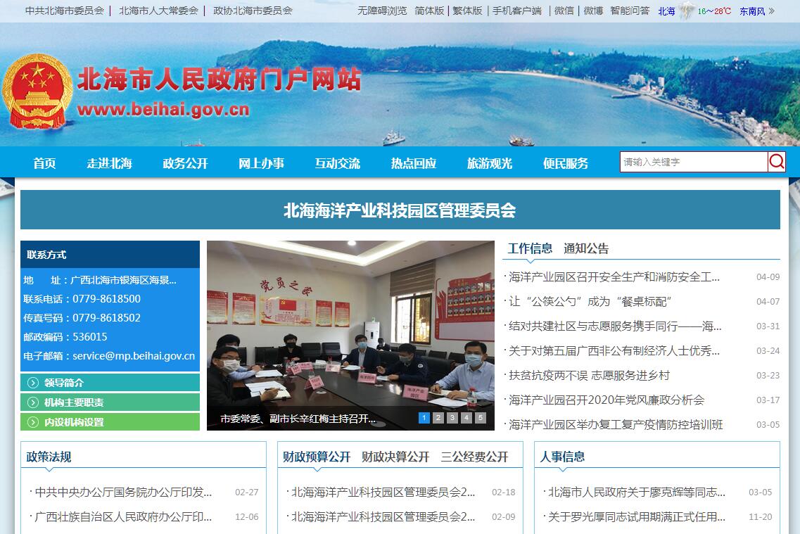 廣西北海國家(海洋)農(nóng)業(yè)科技園區(qū)管理委員會為北海市人民政府派出機(jī)構(gòu),增掛北海市海洋產(chǎn)業(yè)科技園區(qū)管理委員會牌子,其主要職責(zé)是:1、區(qū)域內(nèi)經(jīng)濟(jì)發(fā)展和建設(shè)規(guī)劃、產(chǎn)業(yè)政策、管理辦法和優(yōu)惠政策,按程序報(bào)市人民政府批準(zhǔn)后組織實(shí)施。2、負(fù)責(zé)區(qū)域內(nèi)經(jīng)濟(jì)發(fā)展工作,抓好招商引資、產(chǎn)業(yè)培育、產(chǎn)業(yè)發(fā)展布局等工作;負(fù)責(zé)經(jīng)貿(mào)管理、安全生產(chǎn)、環(huán)境保護(hù)等工作,按權(quán)限審批、審核投資項(xiàng)目。3、負(fù)責(zé)區(qū)域內(nèi)財(cái)政、國有資產(chǎn)管理、投融資等工作。4、負(fù)責(zé)廣西北海國家(海洋)農(nóng)業(yè)科技園區(qū)暨北海海洋產(chǎn)業(yè)科技園區(qū)開發(fā)建設(shè)和管理工作。 5、負(fù)責(zé)區(qū)域內(nèi)城市建設(shè)、市政管理、土地管理、規(guī)劃管理、海域管理等工作;負(fù)責(zé)區(qū)域內(nèi)城鄉(xiāng)規(guī)劃實(shí)施的監(jiān)督管理,組織檢查城鄉(xiāng)規(guī)劃的執(zhí)行情況,依法查處城鄉(xiāng)規(guī)劃違法違規(guī)行為;負(fù)責(zé)依法查處國土資源違法案件等工作。負(fù)責(zé)依法維護(hù)區(qū)域內(nèi)的海洋權(quán)益,依法進(jìn)行海域使用的監(jiān)督管理,依法查處違法行為。6、負(fù)責(zé)協(xié)調(diào)和管理有關(guān)部門設(shè)在區(qū)域內(nèi)的分支機(jī)構(gòu)或派駐機(jī)構(gòu)。7、負(fù)責(zé)區(qū)域內(nèi)企業(yè)、科研機(jī)構(gòu)的公共服務(wù)以及項(xiàng)目建設(shè)的組織、協(xié)調(diào)和管理工作。8、負(fù)責(zé)區(qū)域內(nèi)科技項(xiàng)目的組織實(shí)施、技術(shù)成果推廣應(yīng)用以及技術(shù)培訓(xùn)和合作交流。9、負(fù)責(zé)區(qū)域內(nèi)科技創(chuàng)新體系、信息網(wǎng)絡(luò)的建設(shè)。10、行使市人民政府、轄區(qū)人民政府授予的其他職權(quán)。