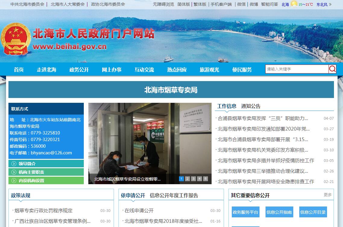 北海市煙草專賣局(公司)按照《中華人民共和國(guó)煙草專賣法》及其《實(shí)施條例》,實(shí)行“統(tǒng)一領(lǐng)導(dǎo)、垂直管理、專賣專營(yíng)”的管理體制,“一套機(jī)構(gòu)、兩塊牌子”,主要負(fù)責(zé)北海市的煙草專賣行政管理及執(zhí)法監(jiān)督、卷煙銷售及卷煙銷售網(wǎng)絡(luò)建設(shè)等工作。北海市局(公司)組建于1985年5月,當(dāng)時(shí)受南寧煙草專賣局(分公司)管轄,1988年4月市煙草公司更名為北海煙草專賣局、廣西區(qū)公司北海分公司,受廣西區(qū)局(公司)直接管轄,下轄合浦縣煙草專賣局(公司)。1999年實(shí)行相對(duì)統(tǒng)一的訪銷配送,同時(shí)成立了覆蓋城鄉(xiāng)的卷煙批發(fā)網(wǎng)點(diǎn);2001年1月起,取消合浦縣煙草公司法人資格,統(tǒng)一為北海分公司一個(gè)法人代表;2002年10月起,整合所有批發(fā)網(wǎng)點(diǎn)和分局。2003年6月,變更為北海市煙草專賣局(公司); 2007年12月,北海市煙草公司變更為廣西區(qū)煙草公司北海市公司,系廣西區(qū)煙草公司的子公司。目前,北海市煙草專賣局(公司)下設(shè)2個(gè)縣級(jí)局,分別為北海市城區(qū)煙草專賣局(營(yíng)銷部)和合浦縣煙草專賣局(營(yíng)銷部);最基層單位有潿洲分局和8個(gè)煙草專賣管理所。市局機(jī)關(guān)職能部門有15個(gè),分別是:辦公室(信訪辦、煙草學(xué)會(huì)),人力資源管理科,財(cái)務(wù)科,審計(jì)科(審計(jì)派駐辦),紀(jì)檢監(jiān)察科(整頓與規(guī)范管理辦公室),信息管理科,法規(guī)科,綜合管理科(客戶投訴中心),黨群工作科,后勤服務(wù)科,安全管理科,區(qū)局派駐北海市局內(nèi)部專賣管理監(jiān)督辦公室(簡(jiǎn)稱“內(nèi)管派駐辦”),專賣監(jiān)督管理科(稽查支隊(duì)),卷煙營(yíng)銷中心,卷煙物流中心。近年來(lái),在北海市委、北海市人民政府和廣西區(qū)煙草專賣局的正確領(lǐng)導(dǎo)下,以習(xí)近平新時(shí)代中國(guó)特色社會(huì)主義思想為指導(dǎo),深入貫徹黨的十八大、十九大精神,以黨建統(tǒng)領(lǐng)業(yè)務(wù)發(fā)展,推動(dòng)企業(yè)向高質(zhì)量發(fā)展穩(wěn)步邁進(jìn)。