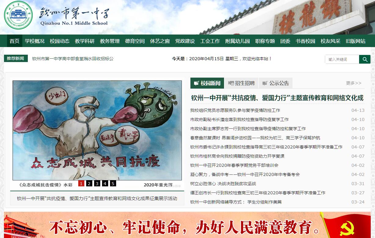 欽州市第一中學(xué)是欽州市一所市直屬中學(xué),是北部灣地區(qū)優(yōu)質(zhì)學(xué)校,是廣西示范性普通高中,廣西區(qū)文明單位,目前是廣西北部灣地區(qū)辦學(xué)規(guī)模最大的學(xué)校。歷史悠久,文化底蘊(yùn)深厚。學(xué)校的前身為光緒十六年(1890年)民族英雄馮子材創(chuàng)辦的綏豐書院,已經(jīng)有127年的辦學(xué)歷史。曾用過的校名有廣東省立欽州中學(xué)、廣東省立第十二中學(xué)、欽州縣縣立中學(xué)、欽縣縣立第一中學(xué),1984年起用今名。分區(qū)辦學(xué),功能齊全,環(huán)境優(yōu)雅。學(xué)校有初中部和高中部?jī)蓚€(gè)校區(qū)。原校址坐落在市中心的寶地——龍崗上,是初中部校區(qū),校園占地70畝;高中部校區(qū)位于欽北新城范圍內(nèi),校園占地200畝,于2008年秋季投入使用。兩校區(qū)辦學(xué)功能齊全,環(huán)境優(yōu)雅?,F(xiàn)已建成各種實(shí)驗(yàn)室、文蔚樓、行知園、藝術(shù)長(zhǎng)廊、和諧廣場(chǎng)、科技廣場(chǎng)、愛心和責(zé)任廣場(chǎng)、生產(chǎn)勞動(dòng)基地等校園文化設(shè)施。師資力量雄厚,辦學(xué)規(guī)模宏大。目前全校教職工699人,其中專任教師551人。專任教師中,擁有研究生學(xué)歷的28人,本科畢業(yè)523人,學(xué)歷達(dá)標(biāo)率100%。有中小學(xué)正高級(jí)教師2人,中小學(xué)高級(jí)教師115人,中小學(xué)一級(jí)教師198人,在職特級(jí)教師4人。是目前欽州市擁有特級(jí)教師、國(guó)家級(jí)骨干教師、省級(jí)骨干教師、市專業(yè)技術(shù)拔尖人才、欽州市優(yōu)秀青年科技人才最多的中學(xué)之一。2017年秋季學(xué)期在校學(xué)生8712人,其中初中在校學(xué)生4254人、高中在校學(xué)生4458人。辦學(xué)理念鮮明,辦學(xué)成績(jī)優(yōu)異。秉承著“讓每一位教師都得到成長(zhǎng)”、“讓每一位學(xué)生都得到成功”的辦學(xué)理念,以人為本,推行生本教育實(shí)踐活動(dòng),嚴(yán)格依法治校,辦學(xué)成績(jī)優(yōu)異。歷年中考、高考成績(jī)居于全市前列,多次摘取高考市文、理科狀元桂冠。2005年高考黃顯道同學(xué)考取廣西文科第三名、欽州市第一名。2006年高考申金昌、雷震文同學(xué)分別考取欽州市文理科狀元。2008年高考黃君子同學(xué)考取欽州市文科第一名。2011年高考我校再次包攬欽州市文理科狀元,何耀軍、程小可多得全市文科一二名,黃開天、陳昊然包攬理科一二名。2012年高考吳芷菱同學(xué)考取欽州市理科狀元,2013年考生梁君窮同學(xué)勇奪欽州市文科桂冠,2014年高考翁粲然同學(xué)考取欽州市文理科狀元,2015年高考羅淇桓同學(xué)獲得欽州市理科第二名。2016年高考全市理科前五名我校占3人,理科前十名我校占7人,理科前十五名我校占10名,文科應(yīng)屆生鄧謐以實(shí)考成績(jī)勇奪市直中學(xué)理科狀元,全市第二名。2017年高考,本科上線1912人,上線總?cè)藬?shù)全市第一,包曼婷英語(yǔ)科150分全區(qū)第一,600分以上13人,其中2人進(jìn)入清華、北大錄取分?jǐn)?shù)線,全面超額完成既定指標(biāo)。在127年的發(fā)展過程中,學(xué)校注重培養(yǎng)具有“家國(guó)情懷,國(guó)際視野”的精英學(xué)生,孕育了一代又一代一中學(xué)子,并使他們茁壯成長(zhǎng)。著名的校友有:參與我國(guó)第一艘核潛艇開發(fā)的船舶工程師吳澤亮,我國(guó)第一臺(tái)百萬次集成電路計(jì)算機(jī)研制項(xiàng)目負(fù)責(zé)人蘇永杰,中華人民共和國(guó)駐外大使戴路,新華社首席記者李穎息,中國(guó)水電部總工程師農(nóng)開清,中山大學(xué)教授李人翼、陸一帆、黃世光、博士李瑋,華南理工大學(xué)黨委書記黃宣光,河南大學(xué)教授黎鑒堂,廣西大學(xué)教授鐘應(yīng)善、黃廷綬,著名畫家謝天成,著名詩(shī)人黃河清,廣西醫(yī)科大學(xué)原校長(zhǎng)黃光武博士,外交部駐宿務(wù)總領(lǐng)事施泳等。近年來,我校努力建設(shè)高品質(zhì)的現(xiàn)代化學(xué)校,突出體現(xiàn)三個(gè)重視,即重視升學(xué)、重視學(xué)生素質(zhì)、重視培養(yǎng)學(xué)生特長(zhǎng)。率先改革人事制度,引領(lǐng)管理體系變革,嚴(yán)抓細(xì)管。以“革新、求變”的態(tài)度,構(gòu)建一中“山?!碧厣1菊n程體系。倡導(dǎo)教師是問題的提出者、情境的設(shè)計(jì)者、學(xué)生的幫助者、平等對(duì)話的“首席” ,提倡主動(dòng)參與學(xué)習(xí)、同伴互助學(xué)習(xí),實(shí)現(xiàn)由“自助——自理——自主”的建構(gòu)。提升德育實(shí)效,構(gòu)建欽州一中健康成長(zhǎng)教育模式,從生態(tài)環(huán)境和人文環(huán)境兩方面入手高起點(diǎn)建設(shè)學(xué)校文化,提高辦學(xué)品位。“綏安弦誦盛,豐滿羽毛成”,這幅學(xué)校初創(chuàng)者對(duì)學(xué)校發(fā)展充滿愿景的楹聯(lián)依然懸掛在鎮(zhèn)龍樓上,始終鞭策著我校師生在教育辦學(xué)的過程中堅(jiān)守初心,砥礪前行,使這所古老的學(xué)校永遠(yuǎn)勃發(fā)盎然生機(jī),不斷開創(chuàng)學(xué)校發(fā)展的新局面,為社會(huì)主義現(xiàn)代化建設(shè)培養(yǎng)具有寬厚的基礎(chǔ)知識(shí)以及創(chuàng)新精神,實(shí)踐能力和終身發(fā)展能力的優(yōu)秀人才。