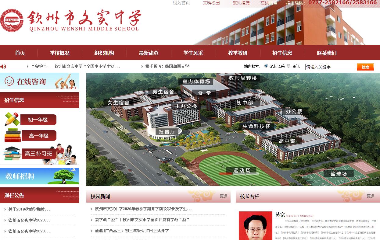 欽州市文實(shí)中學(xué)是經(jīng)欽州市人民政府批準(zhǔn)創(chuàng)辦的一所以國際化為發(fā)展目標(biāo)的現(xiàn)代化民辦高完中學(xué),欽州市第一中學(xué)聯(lián)盟學(xué)校。由著名生物學(xué)家、北京大學(xué)潘文石教授發(fā)起,廣西北部灣旗福健康教育投資有限公司董事長(zhǎng)譚宏 德先生投資創(chuàng)建,總投資2億。學(xué)校按照省級(jí)示范性學(xué)校標(biāo)準(zhǔn)設(shè)計(jì),高標(biāo)準(zhǔn)、高要求、高審美。教室、宿舍、飯?zhí)玫葘W(xué)生學(xué)習(xí)、生活室內(nèi)空間均有空調(diào)。教學(xué)設(shè)施設(shè)備現(xiàn)代化、網(wǎng)絡(luò)化、信息化,可實(shí)現(xiàn)遠(yuǎn)程網(wǎng)絡(luò)教學(xué)。電子閱覽室、圖書室、心理室、 形體健身室、英語視聽室、信息技術(shù)教室、音樂室、美術(shù)室、書法室等高標(biāo)準(zhǔn)的各種功能室一應(yīng)俱全;學(xué)生公寓8人標(biāo)間,空調(diào),雙衛(wèi)生間、洗漱間、儲(chǔ)物柜等生活設(shè)施完備無憂;,24小時(shí)供應(yīng)熱水。校內(nèi)食堂按廣西自治區(qū)A類食堂標(biāo)準(zhǔn)建設(shè),膳食食材品質(zhì)豐富、健康安全、質(zhì)優(yōu)價(jià)廉,按需刷卡消費(fèi);學(xué)校全天候封閉管理,安全監(jiān)控?zé)o死角。網(wǎng)絡(luò)遠(yuǎn)端連接國家級(jí)師范學(xué)校成都七中,信息共享、資源共用。聯(lián)盟百年名校欽州市第一中學(xué),教、科、研同步,測(cè)、評(píng)、考同步,設(shè)立文實(shí)中學(xué)欽州一中教學(xué)班,欽州一中文實(shí)教學(xué)班,為學(xué)生家長(zhǎng)選擇拓寬渠道,為學(xué)生成長(zhǎng)、成才、成功提供保障。