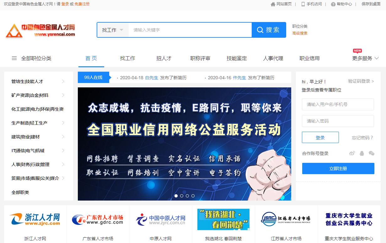 中國有色金屬人才網(wǎng)由有色金屬工業(yè)人才中心主辦。有色金屬工業(yè)人才中心是由中央機構編制委員會批準成立的事業(yè)單位。前身是原中國有色金屬工業(yè)總公司人才研究與開發(fā)交流中心。曾先后隸屬于中國有色金屬總公司,國家有色金屬工業(yè)局,現(xiàn)隸屬于國務院國有資產(chǎn)監(jiān)督管理委員會,由中國有色金屬工業(yè)協(xié)會代管。中心“一套班子,四塊牌子”受國家相關部委委托面向行業(yè)履行相關職能與服務。有色金屬行業(yè)職業(yè)技能鑒定指導中心是勞動和社會保障部批準成立的正式機構,負責行業(yè)特有工種職業(yè)技能鑒定工作,與有色金屬工業(yè)人才中心合署辦公。中國職工教育和職業(yè)培訓協(xié)會有色金屬分會是人社部所屬機構,負責統(tǒng)籌協(xié)調行業(yè)職工培訓工作,現(xiàn)有156家會員單位,秘書處設在有色金屬工業(yè)人才中心。全國有色金屬職業(yè)教育教學指導委員會是教育部所屬機構,負責統(tǒng)籌行業(yè)職業(yè)教育工作,秘書處設在有色金屬工業(yè)人才中心。有色金屬工業(yè)人才中心還是國家外專局、人社部專業(yè)技術人員管理司、軍官轉業(yè)安置司、國家質檢總局特種設備安全監(jiān)察局、國家安全生產(chǎn)監(jiān)督管理總局四司、國家環(huán)??偩中麄鹘逃?、工信部原材料工業(yè)司、國土資源部礦產(chǎn)開發(fā)管理司、商務部產(chǎn)業(yè)調查局、科技部高新技術發(fā)展及產(chǎn)業(yè)化司、全國總工會機冶建材工會、團中央企業(yè)工作部、國家知識產(chǎn)權局、國家民委教育科技司等部委局辦涉及有色金屬行業(yè)人事、人才、教育工作的定向聯(lián)絡協(xié)調單位。