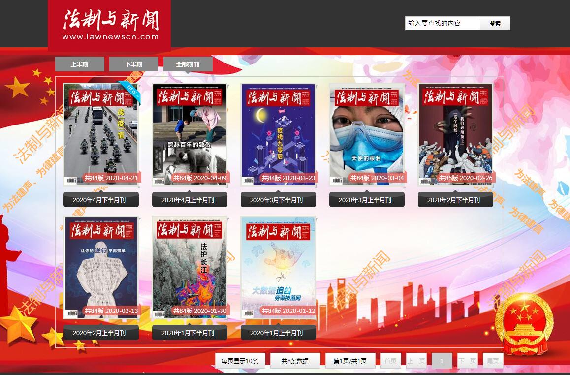 | 網(wǎng)站簡介: 法制與新聞電子版,法制與新聞多媒體數(shù)字報刊。《法制與新聞》雜志(國內(nèi)刊號CN11-3347/D)創(chuàng)刊于1993年,是由法制日報社主辦的中央級法制類新聞半月刊,終堅持“為法正聲、為律建言”的辦刊宗旨,以紀(jì)實見長,薈萃大案要案,既有權(quán)威性,又富有知識和趣味性,以獨立調(diào)查為原則,努力為社會貢獻有影響的、富有深度的法制新聞報道。她敢于仗義執(zhí)言,伸張正義,揭露社會丑惡現(xiàn)象,真實反映社會呼聲。內(nèi)容多姿多彩,深受社會各階層人士喜愛。 |