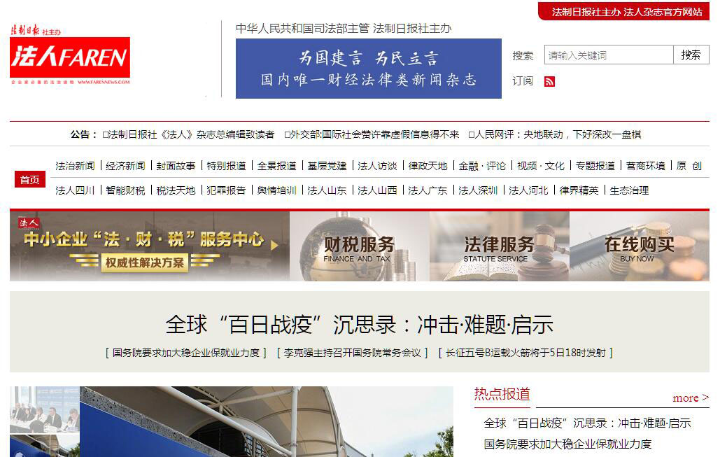 法人網(wǎng)(www.farennews.cn)是法制日報(bào)社旗下《法人》雜志唯一的官方網(wǎng)站?!斗ㄈ恕冯s志作為中央政法委機(jī)關(guān)報(bào)《法制日報(bào)》的子刊,創(chuàng)刊于2004年1月,是中國唯一的財(cái)經(jīng)法律類新聞雜志?!斗ㄈ恕冯s志自創(chuàng)刊以來始終遵循“把法治思維導(dǎo)入企業(yè)管理”的辦刊宗旨,秉持法律角度、全球視野、深度調(diào)查的理念,抵近法律和財(cái)經(jīng)事件的內(nèi)核,關(guān)注企業(yè)和企業(yè)家的發(fā)展環(huán)境以及權(quán)益保障,關(guān)注商業(yè)邏輯,關(guān)注企業(yè)家的命運(yùn)?!斗ㄈ恕冯s志依托法制日報(bào)社,擁有得天獨(dú)厚的法律資源和眾多信息渠道,在企業(yè)界、法律界以及傳播領(lǐng)域均享有良好的口碑。法人網(wǎng)將充分發(fā)揮這一切資源價(jià)值,致力于構(gòu)建“權(quán)威性、導(dǎo)向性、互動性和服務(wù)性”四大優(yōu)勢,不僅為企業(yè)界人士提供法務(wù)參考與意見立場,還將成為連接法律職業(yè)群體和企業(yè)法律服務(wù)需求的橋梁。