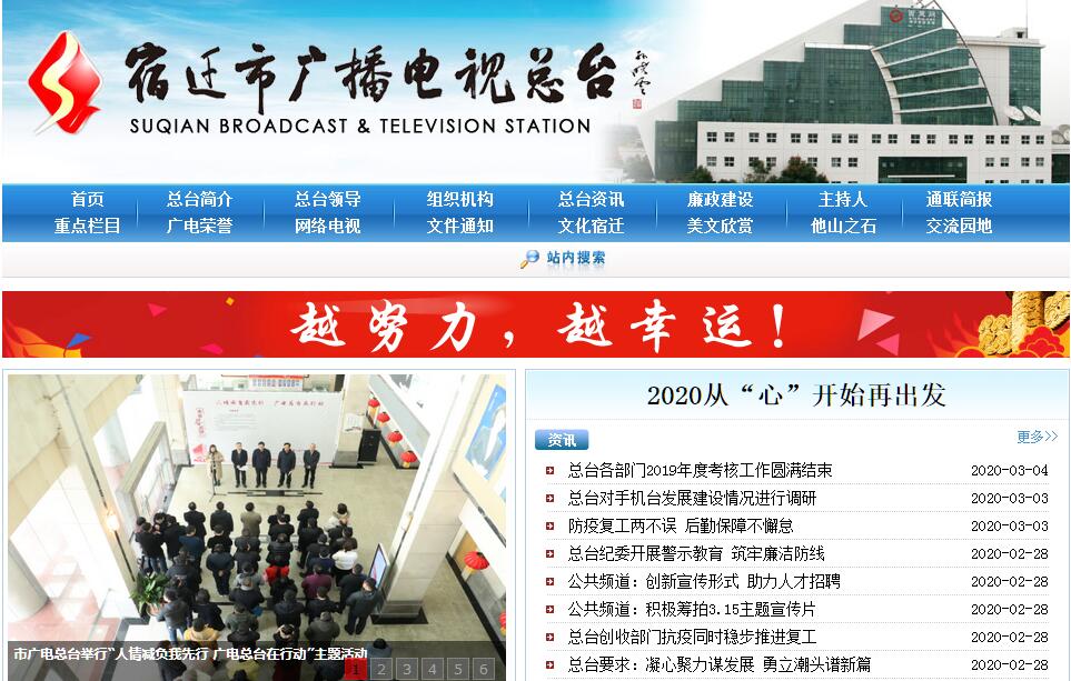 1996年,隨著地級(jí)宿遷市的成立,在原縣級(jí)宿遷電視臺(tái)、廣播電臺(tái)的基礎(chǔ)上升格組建了地級(jí)宿遷電視臺(tái)和廣播電臺(tái)。2005年1月原宿遷電視臺(tái)和原廣播電臺(tái)合并、局臺(tái)分設(shè)成立宿遷市廣播電視總臺(tái),屬市政府直屬正處級(jí)事業(yè)單位,具有獨(dú)立法人資格。主要承擔(dān)市域內(nèi)的廣播、電視新聞、專題宣傳,以及其他各類節(jié)目的采集制作和傳輸發(fā)射任務(wù)。目前,總臺(tái)內(nèi)設(shè)中層機(jī)構(gòu)25個(gè),下設(shè)企業(yè)3個(gè)(宿遷廣電傳媒有限公司、宿遷廣電文化產(chǎn)業(yè)有限公司、江蘇咕咕鳥文化傳播有限公司),控股企業(yè)1個(gè)(江蘇楚韻網(wǎng)絡(luò)文化傳媒有限責(zé)任公司(西楚網(wǎng)))。宿遷市廣播電視總臺(tái)(集團(tuán))現(xiàn)有職工380人,擁有綜合、公共2個(gè)電視頻道,18個(gè)自辦電視節(jié)目;擁有新聞綜合(FM92.1)、交通頻率(FM101.9)、音樂頻率(FM105.5)3個(gè)廣播頻率,29個(gè)自辦廣播節(jié)目。作為主流媒體,宿遷市廣播電視總臺(tái)(集團(tuán))在宿遷及周邊地區(qū)擁有廣泛影響力,廣播、電視所占市場份額在宿遷地區(qū)處于突出地位。多年來,宿遷市廣播電視總臺(tái)(集團(tuán))圍繞黨委政府中心工作,唱響主旋律,打好主動(dòng)仗,用電波和鏡頭見證著宿遷跨越發(fā)展的歷程,展示著項(xiàng)王故里壯美的景色,講述著老百姓動(dòng)人的故事,傳頌著宿遷改革開放豐碩的成果,為全市發(fā)展?fàn)I造了良好的輿論氛圍,極大地豐富了500多萬宿遷人民的精神文化生活?!端捱w新聞》、《楚風(fēng)夜話》、《直通12345》、《宿遷廉風(fēng)》、《我們悅讀會(huì)》、《政(行)風(fēng)熱線》等重點(diǎn)打造的廣播電視節(jié)目得到了受眾的喜愛與關(guān)注。2015年,總臺(tái)積極順應(yīng)“媒體融合”發(fā)展趨勢,依托“互聯(lián)網(wǎng)+”,建設(shè)宿遷手機(jī)臺(tái),推廣輕快自媒體項(xiàng)目。宿遷手機(jī)臺(tái)自2015年9月18日上線運(yùn)行以來,訪問量已突破5500萬人次,注冊用戶數(shù)與手機(jī)臺(tái)下載安裝數(shù)均突破60萬,長時(shí)間位居全國輕快云平臺(tái)廣電百強(qiáng)榜榜首,先后獲得“全國最具影響力手機(jī)臺(tái)”“最具人氣手機(jī)臺(tái)獎(jiǎng)”“年度最具綜合實(shí)力手機(jī)臺(tái)”等多項(xiàng)全國性大獎(jiǎng),成為宿遷市不可或缺的新媒體平臺(tái),也成為全國廣電移動(dòng)客戶端名副其實(shí)的行業(yè)標(biāo)桿。數(shù)百家電視臺(tái)來總臺(tái)觀摩交流。在將宿遷廣電影響力擴(kuò)展至國內(nèi)外的同時(shí),也延伸、提升了宿遷廣播電視廣告價(jià)值、品牌價(jià)值、市場價(jià)值。面對飛速發(fā)展、日新月異的新媒體時(shí)代,宿遷市廣播電視總臺(tái)面臨著諸多的競爭與挑戰(zhàn)。站在新的歷史起點(diǎn),全臺(tái)干部職工將按照“振奮精神、更新觀念、團(tuán)結(jié)苦干、務(wù)求突破”的新要求,奮勇拼搏,全力開啟新一輪跨越發(fā)展、加速振興的新征程,全力推進(jìn)總臺(tái)發(fā)展邁上新水平,不斷向“全省一流、全國有影響”的目標(biāo)邁進(jìn)。回首過去,豪情滿懷;展望未來,激情澎湃。發(fā)展路上,我們將大膽改革、勇于創(chuàng)新、奮力前行、跨越趕超,奏響最強(qiáng)音,再創(chuàng)新輝煌!
