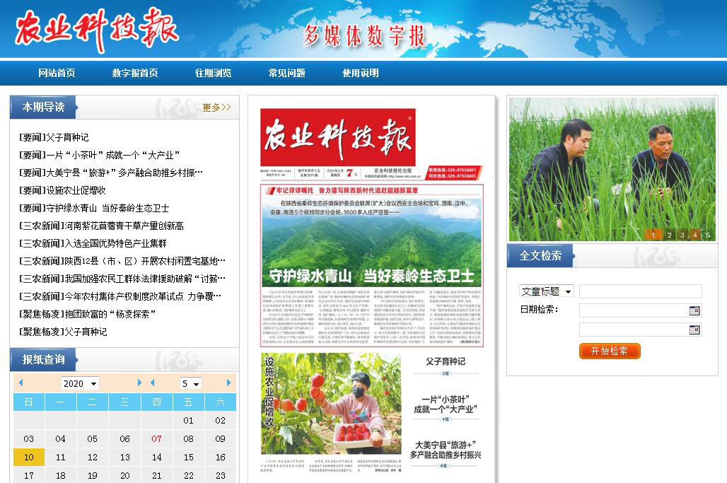 | 網(wǎng)站簡(jiǎn)介: 農(nóng)業(yè)科技報(bào)電子版,農(nóng)業(yè)科技報(bào)多媒體數(shù)字報(bào)刊?!掇r(nóng)業(yè)科技報(bào)》是國(guó)內(nèi)外公開發(fā)行的全國(guó)性農(nóng)業(yè)科技類專業(yè)報(bào)紙,是國(guó)家楊凌農(nóng)業(yè)高新技術(shù)產(chǎn)業(yè)示范區(qū)黨工委主辦的農(nóng)業(yè)類四開八版彩色報(bào)紙,每周四期,每期發(fā)行量23.6萬(wàn)份,全年發(fā)行量2454.4萬(wàn)份。國(guó)內(nèi)統(tǒng)一刊號(hào)CN61-0068,郵發(fā)代號(hào)51-98,每期發(fā)行同時(shí)在西安、鄭州、石家莊、濟(jì)南開印,報(bào)紙通過郵局發(fā)行。 |