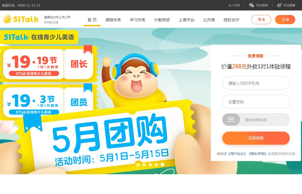 51Talk無憂英語是北京大生知行科技有限公司旗下的在線英語教育品牌,其作為中國在線英語教育的領(lǐng)導(dǎo)品牌,51Talk無憂英語專注于外教1對1,通過有效的沉浸式學(xué)習(xí)法,打破傳統(tǒng)的英語“知識”學(xué)習(xí)模式。專業(yè)國際團隊研發(fā)的適合中國人學(xué)習(xí)的英語課程,幫助中國人用更快捷有效的方式,達成英語水平的提升。51Talk的創(chuàng)始人CEO黃佳佳先生來自于清華大學(xué)外語系, 首創(chuàng)“外教一對一,在線學(xué)英語”的互聯(lián)網(wǎng)學(xué)習(xí)模式,以優(yōu)質(zhì)的外籍師資、經(jīng)濟實惠的價格和全球?qū)<已邪l(fā)的專業(yè)英語課程贏得了數(shù)萬名英語學(xué)習(xí)者的認(rèn)可和好評。51Talk是新東方聯(lián)合創(chuàng)始人、著名英語教育專家徐小平老師唯一推薦的在線英語教育品牌學(xué)員打開電腦、帶上耳機,即可與遠在海外的真人外教一對一實時互動學(xué)習(xí),互聯(lián)網(wǎng)幫助眾多英語學(xué)習(xí)者足不出戶實現(xiàn)了平價“留學(xué)”的夢想,讓教育公平化成為了可能。