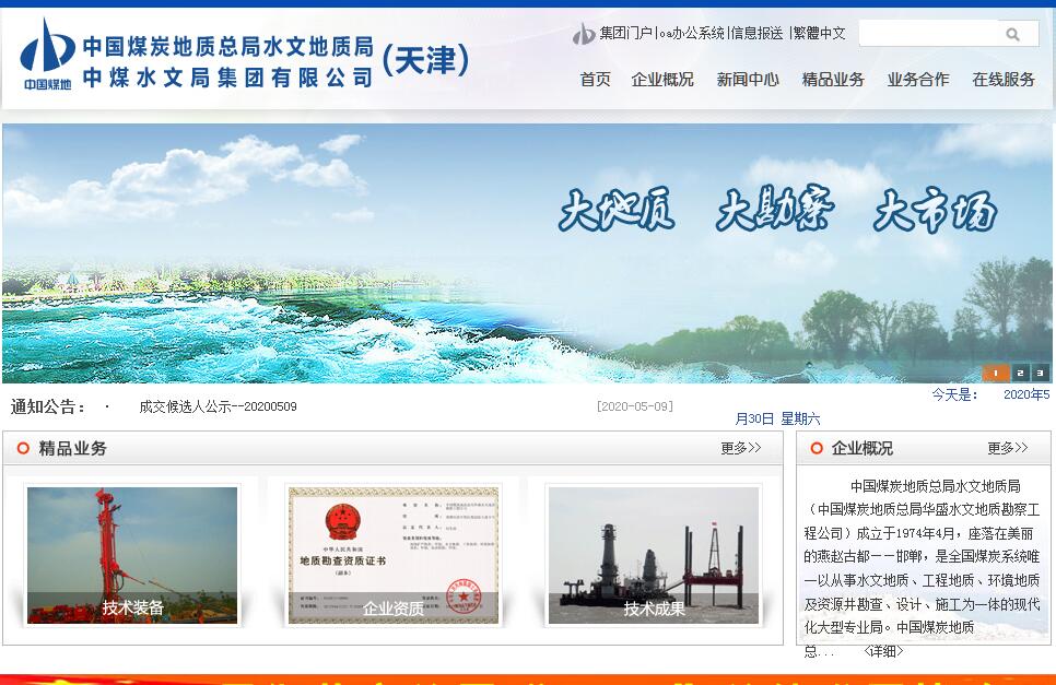 中國煤炭地質(zhì)總局水文地質(zhì)局(中煤水文局集團(tuán)有限公司)始建于1974年,是隸屬于國務(wù)院國資委的中央地質(zhì)勘察單位。2019年,集團(tuán)總部由邯鄲遷址天津作為決策和研發(fā)中心,邯鄲為生產(chǎn)指揮中心。集團(tuán)公司下轄5個地質(zhì)隊(duì)、1個國家級工程研究中心、1個技術(shù)研究院、一個水工環(huán)勘查院、6個專業(yè)公司、3個控股子公司、9個區(qū)域公司。擁有國家各類資質(zhì)甲(壹)級30項(xiàng),乙(貳)級11項(xiàng),獲得專利126件,軟件著作權(quán)19件,承擔(dān)10多項(xiàng)國家及行業(yè)標(biāo)準(zhǔn)制定修訂工作,通過質(zhì)量、環(huán)境、職業(yè)健康質(zhì)量體系認(rèn)證;擁有各類高級職稱人員200多人,享受國務(wù)院政府特殊津貼8人,2人進(jìn)入國家千百萬人才工程,10人進(jìn)入國際礦井水協(xié)會,18人進(jìn)入河北省“三三三人才工程”;擁有各種類型鉆探設(shè)備達(dá)1500余臺套,各種物探設(shè)備40余臺套,具有超大口徑、超深孔及超復(fù)雜鉆孔施工能力和多手段,多角度、立體化物探能力。以服務(wù)國民經(jīng)濟(jì)建設(shè)為己任、國家能源安全生產(chǎn)為核心,足跡遍布26個省市區(qū),與20多個國家和地區(qū)開展技術(shù)交流和工程項(xiàng)目合作,發(fā)展成為全國煤炭地質(zhì)系統(tǒng)唯一集地下水科學(xué)及環(huán)境科學(xué)研究、水資源勘查、設(shè)計(jì)和施工、礦井水勘查與防治、巖土工程、礦山地質(zhì)環(huán)境及地質(zhì)災(zāi)害評價(jià)治理于一體的具有專業(yè)特色的地質(zhì)勘探隊(duì)伍。承擔(dān)了數(shù)十項(xiàng)國家重點(diǎn)能源基地的水工環(huán)地質(zhì)調(diào)查及研究評價(jià)項(xiàng)目,完成供水水文地質(zhì)查,礦床水文地質(zhì)物查、礦山環(huán)境評價(jià)與治理、地?zé)豳Y源開發(fā)與利用、頁巖氣與煤層氣、鹽巖及干熱巖工程工等大中型項(xiàng)目3200多項(xiàng),提交各類勘查及研究報(bào)告1600余件,重點(diǎn)科研成果100余項(xiàng)。以科技創(chuàng)新促產(chǎn)業(yè)發(fā)展,以產(chǎn)業(yè)發(fā)展打造高科技企業(yè)集團(tuán),先后榮獲國家科技進(jìn)步獎,省部級特等獎、優(yōu)質(zhì)報(bào)告獎及新發(fā)現(xiàn)水資源獎等各類獎項(xiàng)220余項(xiàng)。形成了“基于地下水系統(tǒng)的水文地質(zhì)勘查技術(shù)”“基于羽狀多分支水平定向鉆探的區(qū)域治理技術(shù)”“基于取熱不取水的中深層閉式換熱技術(shù)”“基于源頭+末端的關(guān)閉礦山河流污染治理技術(shù)”等一系列核心技術(shù)。積極踐行生態(tài)文明思想,把國家的需要、社會的需求作為改革發(fā)展的方向,發(fā)揮專業(yè)技術(shù)優(yōu)勢履行央企社會責(zé)任,不斷發(fā)展壯大煤礦防治水、礦山環(huán)境恢復(fù)治理、環(huán)境污染治理和地?zé)崮荛_發(fā)利用等綠色勘查產(chǎn)業(yè),取得重大突破,贏得社會信譽(yù)。榮獲“首屆全國百強(qiáng)地質(zhì)隊(duì)”“頁獻(xiàn)突出的煤田地質(zhì)隊(duì)”“地質(zhì)查功助單位”“國家AAA級信用企業(yè)”、全國文明誠信示范單位第榮譽(yù)稱號,邯鄲市、中國煤炭地質(zhì)總局“文明單位”,連續(xù)多年被評為河北省“守合同重信用”企業(yè)。