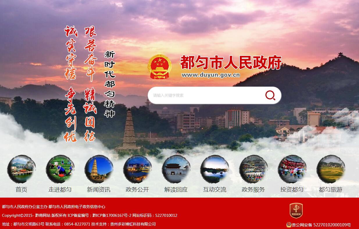都勻,簡稱“勻” (布依族語的意思是“彩云之城”),地處貴州苗嶺山脈南部,東西寬64千米,南北長63千米,總面積2285平方千米,耕地面積4.6萬公頃。下轄文峰街道辦事處、廣惠街道辦事處、小圍寨街道辦事處、沙包堡街道辦事處、綠茵湖街道辦事處、勻東鎮(zhèn)、墨沖鎮(zhèn)、平浪鎮(zhèn)、毛尖鎮(zhèn)、歸蘭水族鄉(xiāng),共行政村109個、社區(qū)26個,總人口50萬人,其中城鎮(zhèn)人口26.45萬人,鄉(xiāng)村人口22.86萬人。少數民族35.47萬人,占總口的70.9%,人口較多的少數民族有布依族、苗族、水族。人口出生率8.93%,自然增長率2.77%。都勻是黔南布依族苗族自治州首府,系中國優(yōu)秀旅游城市、全球綠色城市、中國十大名茶—“都勻毛尖”之鄉(xiāng)、西部攝影城、中國宜居城鎮(zhèn)、中國十佳空氣質量城市、全國現代物流示范城市、貴州省文明城市,同時也是全國首批產城融合發(fā)展示范區(qū)、貴州省首批縣級國家新型城鎮(zhèn)化綜合試點市和黔中經濟區(qū)五大主要城市中心之一。都勻市東與丹寨縣及三都水族自治縣毗鄰,南與獨山縣、平塘縣接壤,西與貴定縣相鄰,北與麻江縣交界,是西南三省通向東南沿海的交通要沖,境內交通路網密集,交通便利。貴廣高鐵、黔桂鐵路和廈蓉、蘭海高速公路等通往大華南、大西南出海陸路黃金通道貫穿全境,321和210國道等交匯于此,在建中的貴陽至南寧高鐵、都勻至云南香格里拉高速公路在都勻連接,在建都勻至黔東南州府凱里、至貴州南大門獨山城際大道,甕安至福泉馬場坪鐵路延伸都勻段等交通網,擬建都勻機場。距離貴陽國際機場78千米,與貴陽“半小時交通經濟圈”、珠江三角城市群“四小時交通經濟圈”正逐步形成。都勻市山川秀麗,物產豐富。境內大小河流257條,總長1321千米,年平均水資源總量為16.87億立方米;礦產資源儲量可觀,有各種礦床、礦點、礦化點80余處;生物資源豐富,有各種野生動物280多種,有國家保護珍稀植物12種;旅游資源得天獨厚,有沅水源劍江斗篷山國家級風景名勝區(qū)(斗篷山景區(qū)、螺螄殼景區(qū)、劍江景區(qū)、都柳江景區(qū)、鳳囀河景區(qū))、清水江國家濕地公園、青云湖國家森林公園、螺螄殼高山有機生態(tài)茶海、沅水源劍江河、百子橋、石板街、文峰園、南沙洲、三江堰、杉木湖、秦漢影視城、毛尖風情小鎮(zhèn)、中華茶文化博覽園、三線建設博物館等自然風光和歷史人文景觀各具特色,有布依、苗、水、瑤、毛南等33個少數民族,民族民風民俗多姿多彩;空氣質量優(yōu)良率達99%以上,森林覆蓋率62.03%。都勻被列為第一批國家新型城鎮(zhèn)化綜合試點地區(qū)、國家產城融合示范區(qū)。2019年地區(qū)生產總值2135946萬元,比上年增長4.7%。其中,第一產業(yè)增加值193936萬元,增長6.3%;第二產業(yè)增加值392447萬元,增長5.9%;第三產業(yè)增加值1549563萬元,增長4.2%,其中,批發(fā)和零售業(yè)增長4.3%,交通運輸、倉儲和郵政業(yè)增長7.1%,住宿和餐飲業(yè)增長5.7%,金融業(yè)增長7.7%,房地產業(yè)增長7.2%,其他服務業(yè)增長2.3%。人均地區(qū)生產總值45470元,比上年增長4.3%。2019中國西部百強縣市。第二批節(jié)水型社會建設達標縣(區(qū))。