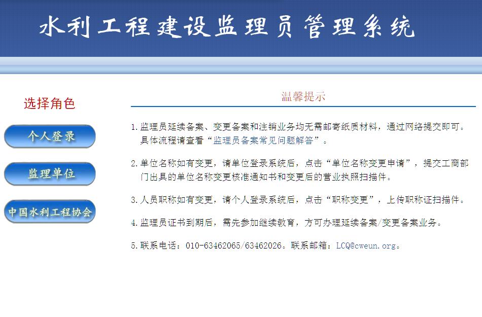 | 網(wǎng)站名稱: | 水利工程建設(shè)監(jiān)理員管理系統(tǒng) | ||