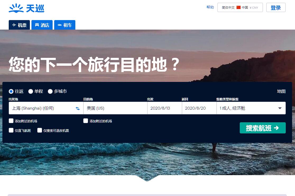 | 網(wǎng)站簡介: 天巡網(wǎng) Skyscanner天巡,為您提供覆蓋全球超過1000家航空公司航班機(jī)票,含廉價(jià)航空,國際機(jī)票,特價(jià)機(jī)票,查詢預(yù)定及酒店租車等服務(wù)!比較機(jī)票價(jià)格、打折機(jī)票預(yù)訂。世界最大獨(dú)立機(jī)票搜索引擎,國際機(jī)票首選平臺(tái)。 |