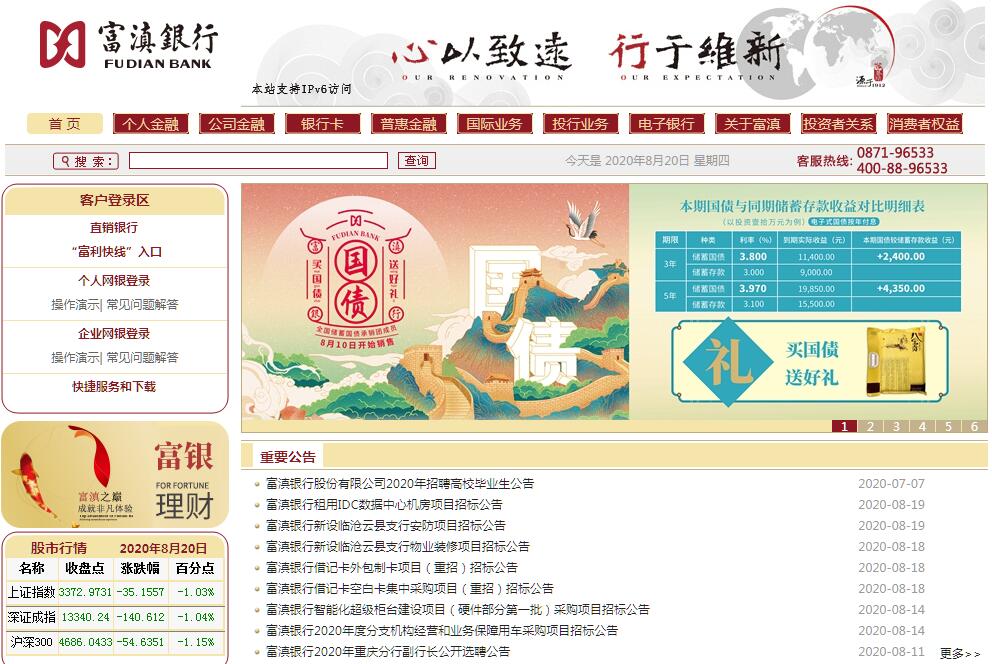 富滇銀行品牌創(chuàng)立于1912年,是擁有百年歷史的老字號(hào)銀行品牌。歷史上的富滇銀行聲名遠(yuǎn)揚(yáng)海內(nèi)外,發(fā)行滇幣調(diào)控云南金融,是全球第六大華資銀行,創(chuàng)造了一段輝煌的金融史。2007年12月30日,富滇銀行股份有限公司經(jīng)中國銀監(jiān)會(huì)批準(zhǔn)恢復(fù)成立,成為云南省首家省級(jí)地方性股份制商業(yè)銀行。在省委、省政府的堅(jiān)強(qiáng)領(lǐng)導(dǎo)下,在主管監(jiān)管單位和社會(huì)各界的指導(dǎo)支持下,富滇銀行依托百年金融品牌底蘊(yùn),主動(dòng)服務(wù)和融入“一帶一路”、長江經(jīng)濟(jì)帶建設(shè),綜合實(shí)力不斷壯大,品牌影響持續(xù)提升,差異化特色化經(jīng)營能力穩(wěn)步增強(qiáng)。目前150家營業(yè)機(jī)構(gòu)遍布云南省15個(gè)州市和重慶市,發(fā)起設(shè)立4家村鎮(zhèn)銀行,與老撾外貿(mào)大眾銀行合資設(shè)立老中銀行,是全國唯一在境外設(shè)立子行的城商行。2019年是新中國成立70周年,富滇銀行將高舉習(xí)近平新時(shí)代中國特色社會(huì)主義思想偉大旗幟,以發(fā)展為第一要?jiǎng)?wù),以人才為第一資源,以創(chuàng)新為第一動(dòng)力,深入貫徹落實(shí)黨的十九大、中央經(jīng)濟(jì)工作會(huì)議、全國金融工作會(huì)議精神,聚焦綠色金融、旅游金融、跨境金融、普惠金融、數(shù)字金融五大特色業(yè)務(wù),從防范化解風(fēng)險(xiǎn)、提升資產(chǎn)質(zhì)量中激發(fā)增長活力,從融入國家戰(zhàn)略、服務(wù)實(shí)體經(jīng)濟(jì)中拓展市場(chǎng)空間,從深化國企改革、加快戰(zhàn)略轉(zhuǎn)型中增強(qiáng)發(fā)展動(dòng)能,全面賦能高質(zhì)量跨越式發(fā)展,加快建設(shè)成為現(xiàn)代化、國際化、公眾化的新型股份制商業(yè)銀行。