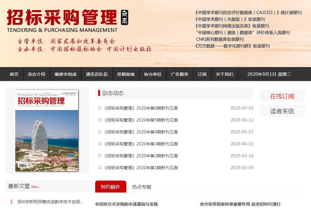 《招標(biāo)采購管理》由國家發(fā)展和改革委員會(huì)主管,中國招標(biāo)投標(biāo)協(xié)會(huì)、中國計(jì)劃出版社共同主辦,是招標(biāo)采購行業(yè)的專業(yè)性期刊,國內(nèi)統(tǒng)一刊號(hào)為CN10—1075/F,國際標(biāo)準(zhǔn)刊號(hào)為ISSN2095—4123。其辦刊宗旨是:宣傳國家招標(biāo)采購法律法規(guī),開展理論研討和實(shí)踐交流,介紹工作經(jīng)驗(yàn)和創(chuàng)新舉措,指導(dǎo)招標(biāo)采購工作實(shí)踐,促進(jìn)我國招標(biāo)采購行業(yè)健康發(fā)展。 其主要欄目有:政策法規(guī)、專題報(bào)道、特約撰稿人、爭鳴、電子招標(biāo)投標(biāo)、研究與探討、實(shí)踐交流、合同管理、招標(biāo)師之家、案例分析、解疑釋惑、警鐘長鳴、投標(biāo)課堂、國際視野、企業(yè)風(fēng)采、招標(biāo)投標(biāo)指數(shù)播報(bào)、資訊、文苑。