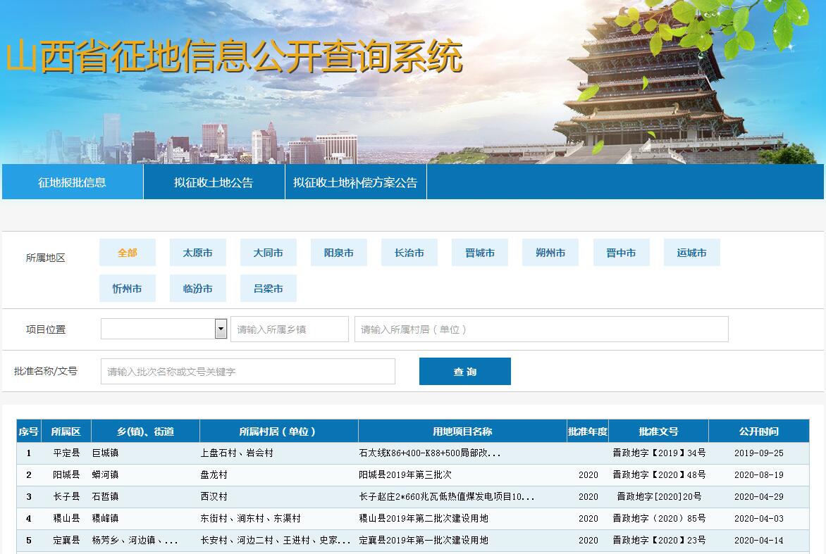| 網(wǎng)站名稱: | 山西省征地信息公開查詢系統(tǒng) | ||