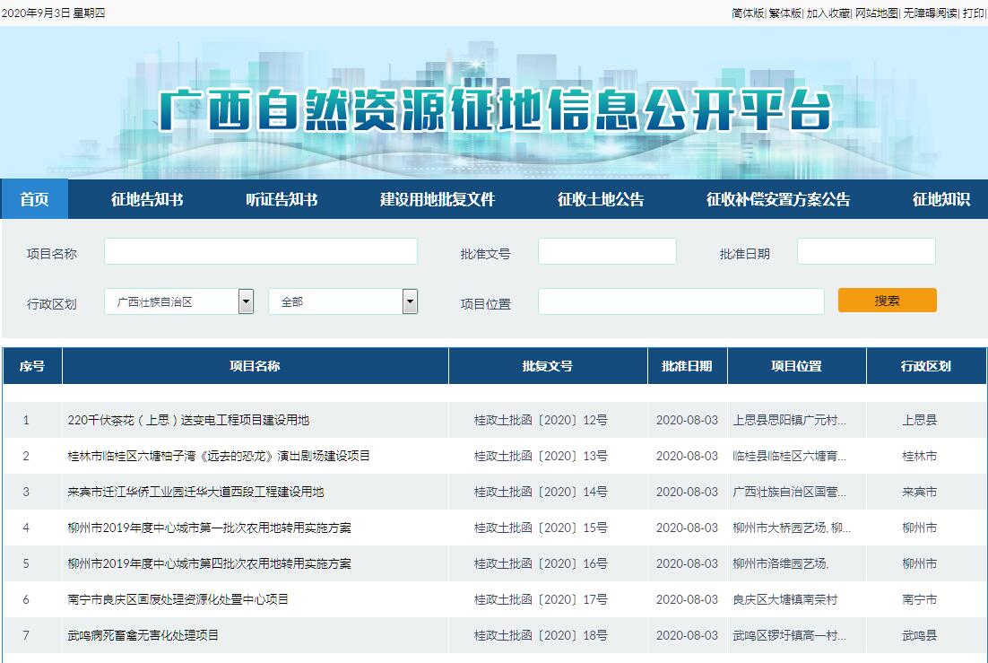 | 網(wǎng)站名稱(chēng): | 廣西自然資源征地信息公開(kāi)平臺(tái) | ||