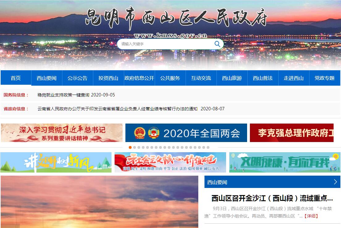 西山區(qū),隸屬于云南省昆明市,昆明四個(gè)主城區(qū)之一,位于昆明主城區(qū)西南部。東與五華區(qū)、官渡區(qū)毗鄰,與呈貢區(qū)隔水相望;南連晉寧區(qū);西鄰昆明市屬安寧市、楚雄州祿豐縣;北接富民縣、五華區(qū)。西山區(qū)總面積881.32平方千米,其中山區(qū)面積660.49平方千米,占74.94%;壩區(qū)面積220.83平方千米,占25.06%。轄區(qū)有滇池湖岸線68千米。最高海拔2622米,最低海拔1731米。截止2017年,入駐企業(yè)2461家。西山區(qū)轄10個(gè)街道辦事處,轄區(qū)內(nèi)居住著彝、白、回、苗、納西、壯、哈尼、傈僳、滿、蒙古等25個(gè)少數(shù)民族。2017年,西山區(qū)常住人口78.4萬。2017年全年,西山區(qū)實(shí)現(xiàn)生產(chǎn)總值(GDP)567.09億元。轄區(qū)內(nèi)有金馬碧雞坊、西山風(fēng)景名勝區(qū),聶耳墓、南洋機(jī)工紀(jì)念館、觀滇池日出、觀太華寺、碧雞玉蘭園、千步崖蹬道和梁王避暑臺(tái)遺址、龍門斷崖和小石林等風(fēng)景名勝。2019年11月,入選第二批節(jié)水型社會(huì)建設(shè)達(dá)標(biāo)縣(區(qū))。