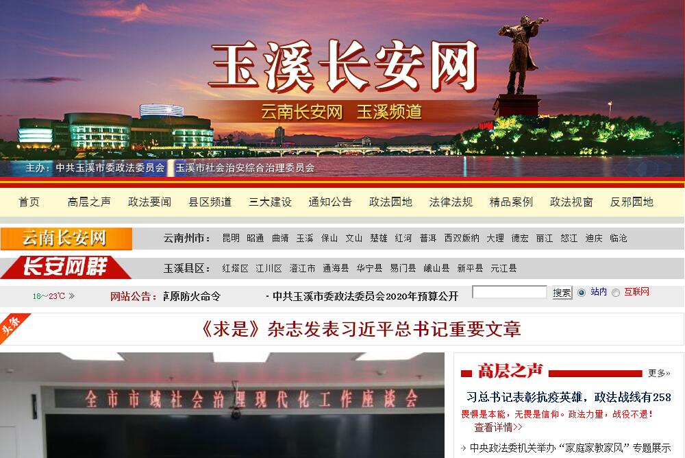 | 網(wǎng)站簡介: 玉溪長安網(wǎng)是中共玉溪市委政法委員會(huì)、玉溪市社會(huì)管理綜合治理委員會(huì)的門戶網(wǎng)站,玉溪市政法綜治系統(tǒng)的重要網(wǎng)絡(luò)宣傳陣地、信息發(fā)布渠道和輿論引導(dǎo)平臺(tái)。 |