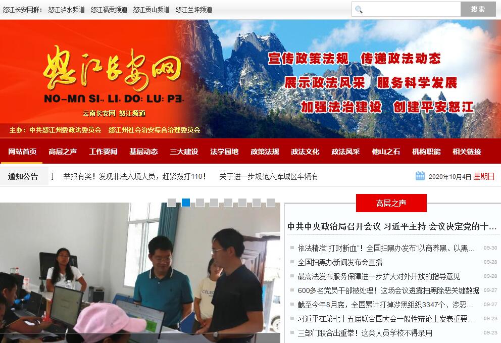 怒江長安網由中共怒江州委政法委員會、怒江州社會治安綜合治理委員會主辦。
