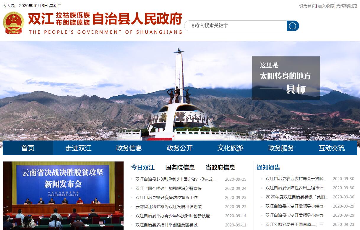 雙江拉祜族佤族布朗族傣族自治縣隸屬云南省臨滄市,雙江因瀾滄江和小黑江交匯于縣境東南而得名,位于云南省西南部,地處東經(jīng) 99o35′~100o09′,北緯23o11′~23o48′之間。北回歸線穿境而過,轄4鄉(xiāng)2鎮(zhèn)2農(nóng)場,76個村(社區(qū))??h域海拔669-3233米,為南亞熱帶暖濕季風(fēng)氣候,年平均氣溫20.7℃。國土面積2157.11平方千米??h域內(nèi)水資源豐富,年降雨量580.2毫米。雙江是全國最美茶鄉(xiāng)、全國茶產(chǎn)業(yè)百強縣、全省茶產(chǎn)業(yè)十強縣、云南省“一縣一業(yè)”茶產(chǎn)業(yè)重點縣,其中勐庫大葉種茶與茶文化系統(tǒng)被認定為全國重要的農(nóng)業(yè)文化遺產(chǎn),境內(nèi)1.27萬畝野生古茶樹群落,被授予“世界古茶原鄉(xiāng)第一標(biāo)志地”。先后被評為“全國民族團結(jié)進步模范先進縣”“全國法治縣創(chuàng)建活動先進單位”“全國普法先進縣”“全國民族團結(jié)進步示范縣”“全省法治縣創(chuàng)建活動先進單位”“國家級漁業(yè)健康養(yǎng)殖示范縣”“云南省文明城市”“省級園林縣城”“國家衛(wèi)生縣城”,為云南省首家被國家林業(yè)和草原局授予《聯(lián)合國森林文書》履約示范單位。2019年末,全縣總?cè)丝?8.57萬人,其中城鎮(zhèn)常住人口7.52萬人,占總?cè)丝诘?0.45%,少數(shù)民族人口8.26萬人,占總?cè)丝诘?4.48%。縣內(nèi)居住拉祜族、佤族、布朗族、傣族、彝族等23種少數(shù)民族。其中布朗族人口占全國布朗族總?cè)丝诘?2.2%,是布朗族的主要聚居地和文化發(fā)祥地之一。2019年,實現(xiàn)地區(qū)生產(chǎn)總值55.23億元,同比增7%。其中:第一產(chǎn)業(yè)14.48億元,同比增5.5%;第二產(chǎn)業(yè)14.31億元,同比增3.2%;第三產(chǎn)業(yè)26.44億元,同比增10.4%。完成固定資產(chǎn)投資30.7億元,同比增40%。一般公共預(yù)算收入2.97億元,同比下降3.12%;一般公共預(yù)算支出23.85億元,同比增8.54%;城鎮(zhèn)常住居民人均可支配收入29208元,同比增8.9%;農(nóng)村常住居民人均可支配收入11925元,同比增10.9%。