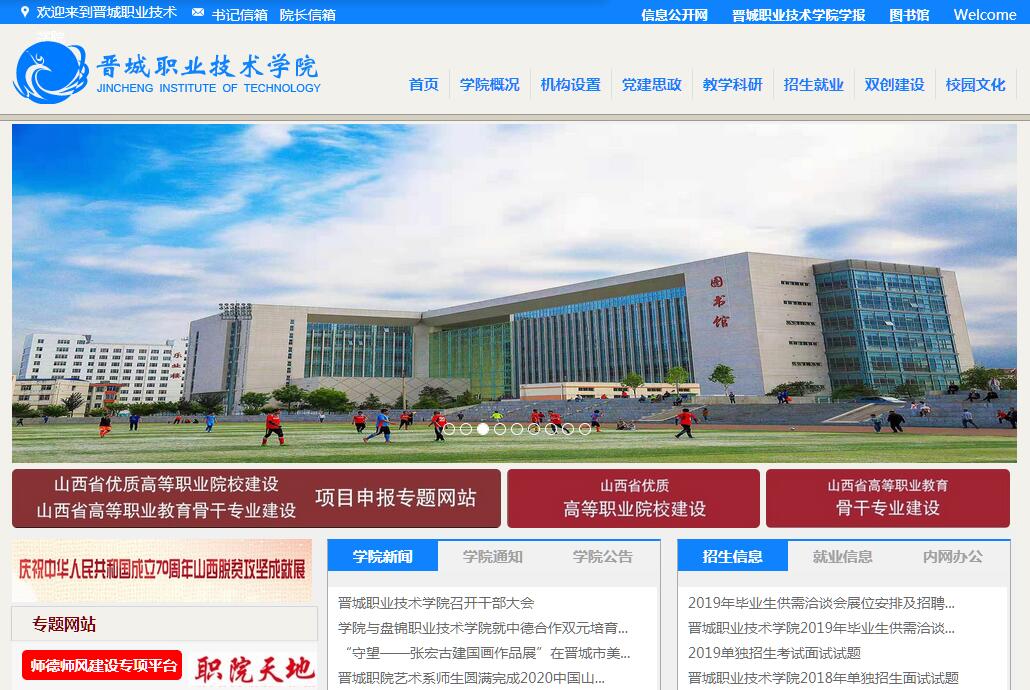 晉城職業(yè)技術(shù)學(xué)院是2001年5月經(jīng)山西省人民政府批準(zhǔn)、國家教育部備案,由原晉城市教育學(xué)院、晉城師范學(xué)校、晉城市中等專業(yè)學(xué)校、晉城市文化藝術(shù)學(xué)校合并組建的一所全日制高職院校。建院以來,學(xué)院始終秉承“誠明樂業(yè)”的校訓(xùn)和“以學(xué)生為根本、以發(fā)展為核心、以市場為導(dǎo)向,以就業(yè)為目的”的辦學(xué)理念,為當(dāng)?shù)丶爸苓叺貐^(qū)培養(yǎng)了大批符合現(xiàn)代企業(yè)用人標(biāo)準(zhǔn)的高級技能型人才。是“山西省文明校園單位”“省級示范性高等職業(yè)院校”“晉城市首批就業(yè)創(chuàng)業(yè)實訓(xùn)基地”“晉城市精神文明建設(shè)標(biāo)兵單位”“全國全民閱讀先進單位”“山西省就業(yè)工作先進集體”“山西省大學(xué)生心理健康教育與咨詢示范單位”;被確立為“山西省優(yōu)質(zhì)高等職業(yè)院校建設(shè)單位”“山西省高等職業(yè)教育骨干專業(yè)建設(shè)單位”“省級現(xiàn)代學(xué)徒制試點單位”“晉城市中德合作雙元制辦學(xué)示范單位”。學(xué)院占地274畝,建筑面積15.4萬平方米,總資產(chǎn)2億多元?,F(xiàn)有80個校內(nèi)實訓(xùn)基地,100余個校外實訓(xùn)基地。學(xué)院圖書館于2014年10月投入使用,和晉城市圖書館實行“兩塊牌子一套人馬”管理體制,是國家一級圖書館。既承擔(dān)為師生教學(xué)與科研提供服務(wù)的高校館職能,又承擔(dān)為晉城市民服務(wù)的公共館職能。現(xiàn)有藏書58萬冊,報紙與期刊1000余種,閱覽座位1089個。擁有市民學(xué)習(xí)空間、中國知網(wǎng)數(shù)據(jù)庫、工具書數(shù)據(jù)庫、超星電子書與學(xué)術(shù)視頻數(shù)據(jù)庫、萬方視頻數(shù)據(jù)庫、北大方正阿帕比電子書、博看期刊數(shù)據(jù)庫等豐富的數(shù)字資源。運用先進的RFID無線射頻技術(shù),配置自助辦證、檢索、借還書、打印復(fù)印系統(tǒng),有電子讀報機、讀刊機、電子書借閱機等現(xiàn)代化閱讀終端,裝備有24小時室外自助圖書館。
