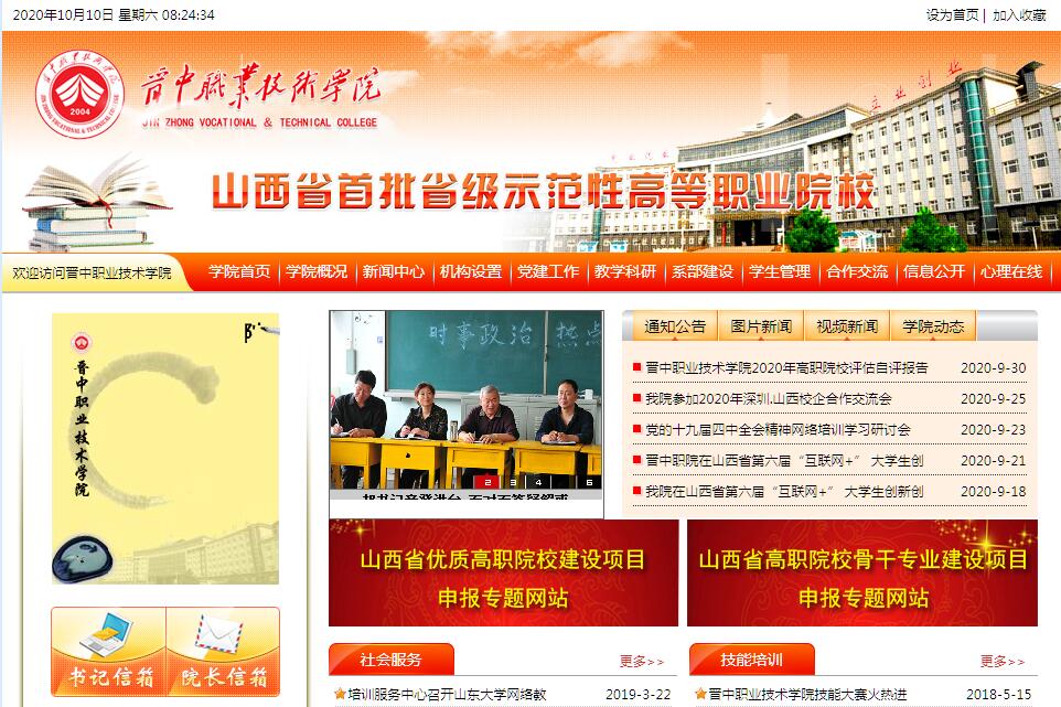 晉中職業(yè)技術(shù)學(xué)院成立于2004年,是經(jīng)山西省人民政府批準(zhǔn),教育部備案的公辦全日制普通高職院校。建校以來,學(xué)校堅(jiān)持立德樹人,秉持“修德、積學(xué)、精技、善行”的校訓(xùn),著力推行“校企合作、工學(xué)結(jié)合”人才培養(yǎng)模式和“晉商文化滲透、校企文化融合、對(duì)外文化交流”文化熏陶模式,致力于培養(yǎng)知識(shí)型、技能型、創(chuàng)新型技術(shù)技能人才。學(xué)校是山西省首批示范性高等職業(yè)院校,山西省優(yōu)質(zhì)高等職業(yè)院校建設(shè)單位、山西省高職院校人才培養(yǎng)工作先進(jìn)單位、山西省“五一”勞動(dòng)獎(jiǎng)狀獲得者、山西省公眾滿意辦學(xué)單位,全國煤炭行業(yè)教育工作先進(jìn)單位,全國高等職業(yè)院校創(chuàng)新發(fā)明教育基地,山西省省級(jí)貧困村致富帶頭人培育基地,山西省省級(jí)新型職業(yè)農(nóng)民培育示范基地。在2019年中國高等教育學(xué)會(huì)發(fā)布的《中國高校創(chuàng)新人才培養(yǎng)暨學(xué)科競(jìng)賽評(píng)估結(jié)果》中,學(xué)校在全國高職院校中排名第169位,在山西省高職院校中排名第4位。學(xué)校是中德職業(yè)教育聯(lián)盟副理事長單位、《悉尼協(xié)議》應(yīng)用研究高職院校聯(lián)盟單位、教育部“中德諾浩高技能汽車人才培養(yǎng)助推計(jì)劃”合作職業(yè)院校、教育部“高端技能型、應(yīng)用型人才聯(lián)合培養(yǎng)百千萬交流計(jì)劃”中方項(xiàng)目院校、中國教育國際交流協(xié)會(huì)理事單位、職教國際交流分會(huì)常務(wù)理事單位、中國職業(yè)教育對(duì)外合作聯(lián)盟副主席單位,入選亞太職業(yè)院校影響力50強(qiáng)。