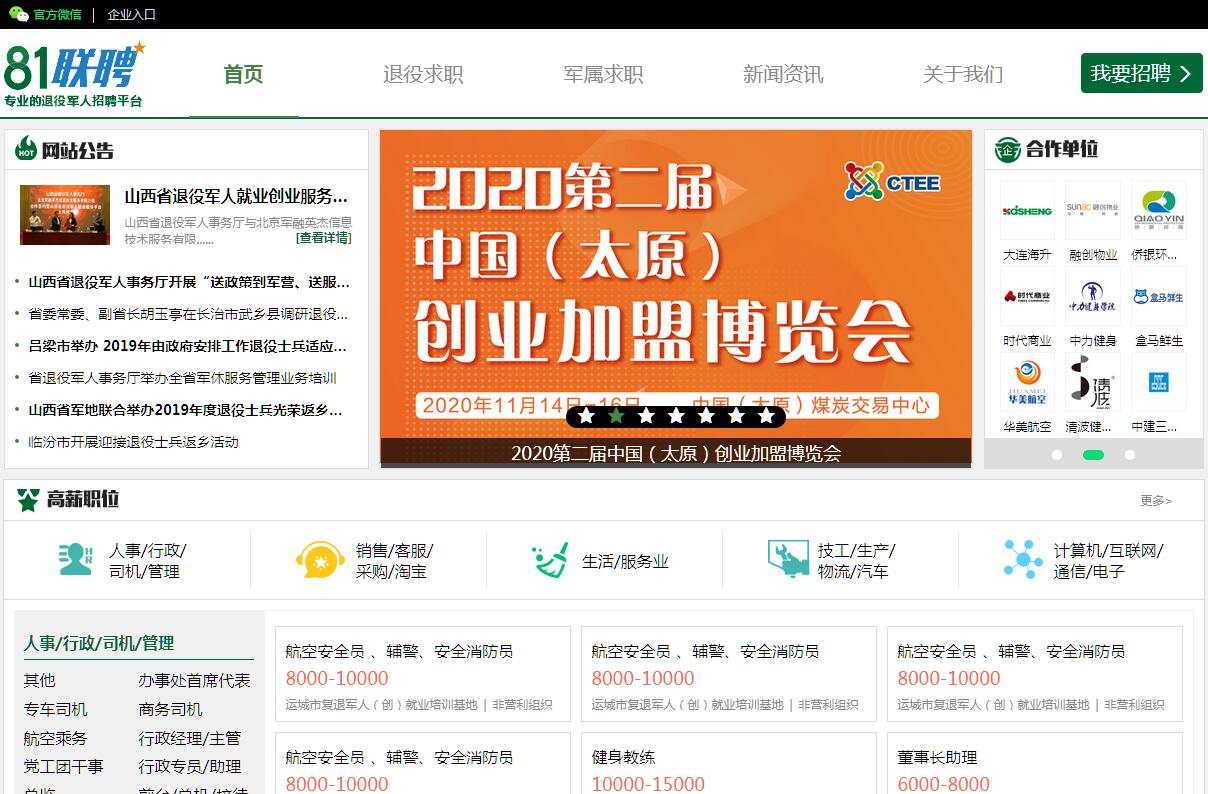 | 網(wǎng)站簡介: 81聯(lián)聘是一個專為退役軍人無償提供求職—就業(yè)—法律支持服務的互聯(lián)網(wǎng)平臺。核心團隊主要成員在企業(yè)管理、人力資源、資本運營等領域擁有豐富的從業(yè)經(jīng)驗,具有濃重的軍人情結和資深的經(jīng)營管理水平。本著“誠信、團結、精準、高效”的原則,依托大數(shù)據(jù)+人工智能核心技術,81聯(lián)聘為退役軍人搭建了才盡其用的舞臺。 |
