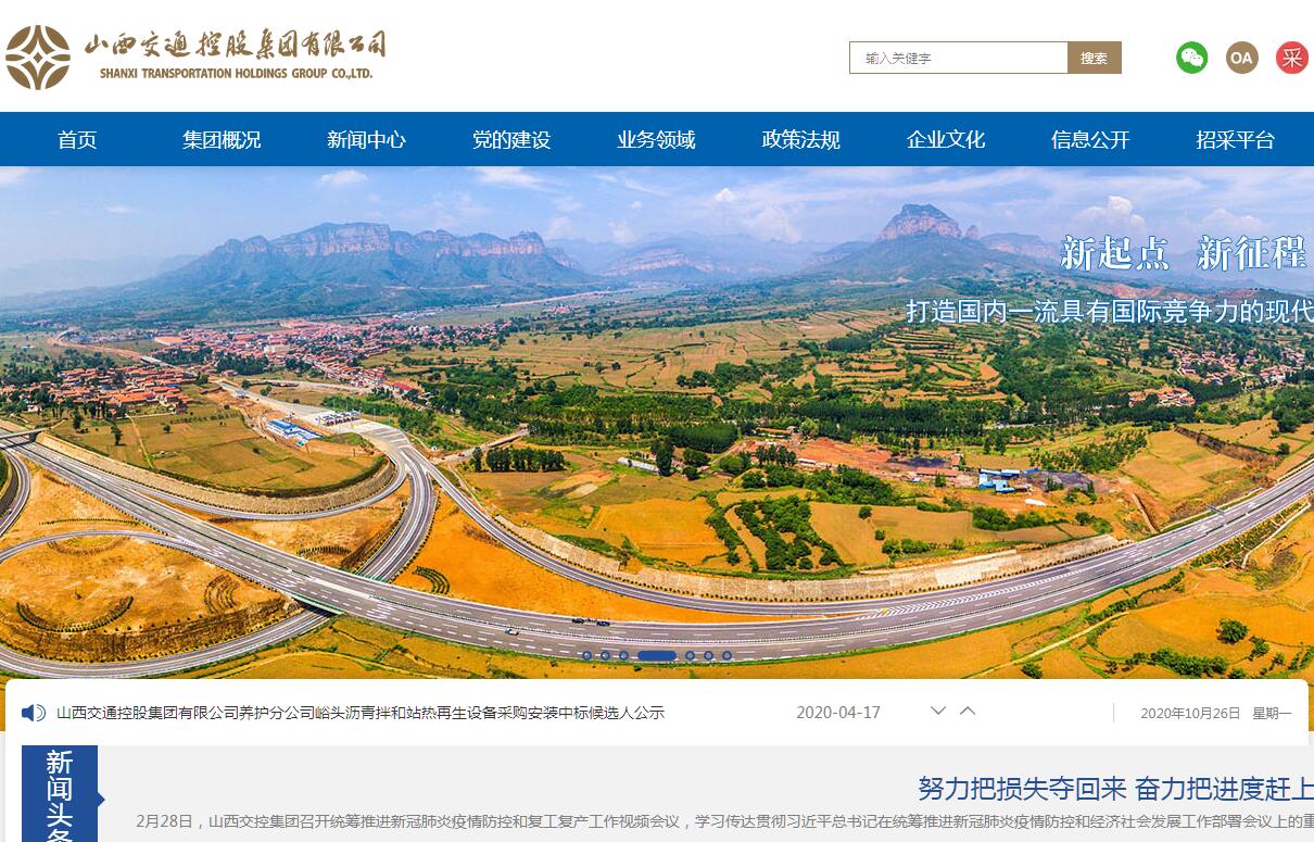 山西交通控股集團有限公司于2017年11月24日掛牌運營,承擔(dān)全省交通運輸基礎(chǔ)設(shè)施的投融資、建設(shè)、運營和管理。集團公司注冊資本500億元,資產(chǎn)總額逾5000億元,是一家集設(shè)計、施工、監(jiān)理、投資、運營、管理于一體的全產(chǎn)業(yè)鏈現(xiàn)代交通企業(yè)集團。擁有路橋、交投、高速、交科等10家全資、控股子公司和“山西路橋”(000755.SZ)1家上市公司,以及16個高速公路分公司。目前,管理運營高速公路5000余公里,占全省高速公路總里程95%以上。集團公司是省內(nèi)重大交通項目的投融資主體,經(jīng)營范圍:高速公路等重大交通基礎(chǔ)設(shè)施及相關(guān)資源的投資、建設(shè)、經(jīng)營和管理;金融、證券、保險、融資租賃及高新技術(shù)等高端產(chǎn)業(yè)的投資經(jīng)營;綜合運輸、現(xiàn)代物流、勘察設(shè)計與研發(fā)、建筑施工、咨詢、監(jiān)理等的經(jīng)營;交通沿線土地等資源的開發(fā)經(jīng)營;房地產(chǎn)開發(fā)經(jīng)營等。