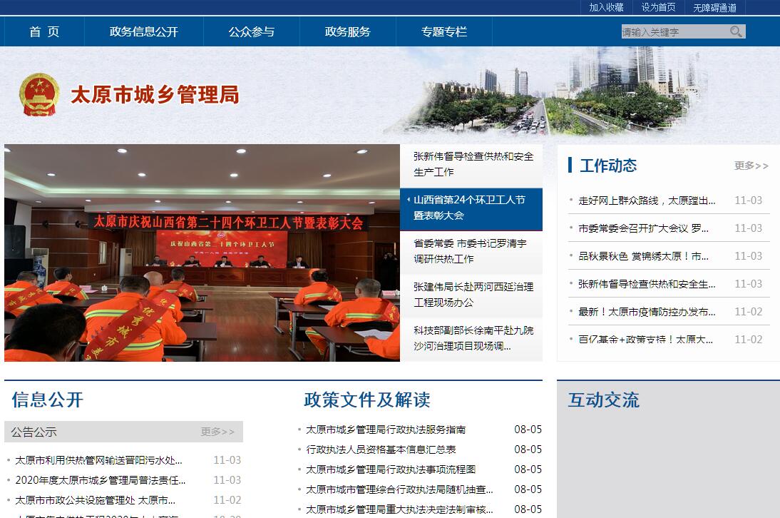 太原市城鄉(xiāng)管理局主要職責是∶?(一)貫徹執(zhí)行國家、省、市有關城鄉(xiāng)管理和城市管理綜合行政執(zhí)法的法律法規(guī)和方針政策,研究起草相關的地方性法規(guī)、規(guī)章草案和政策并組織實施。(二)負責研究制定市政基礎設施維護及供水、供氣、供熱、城鎮(zhèn)排水、污水處理、城鎮(zhèn)內澇防治、垃圾處理、市容環(huán)衛(wèi)、城管執(zhí)法等城鄉(xiāng)管理工作發(fā)展戰(zhàn)略、中長期規(guī)劃、專業(yè)項目規(guī)劃和年度計劃目標,經批準后組織實施。負責本系統(tǒng)的行業(yè)改革、科學研究、技術交流與合作、技術引進及創(chuàng)新、科技成果的推廣和應用。負責城鄉(xiāng)管理規(guī)范和行業(yè)標準的制定。?(三)負責組織編制下達城鄉(xiāng)管理維護改造和城鄉(xiāng)管理專項經費年度計劃。負責城鄉(xiāng)管理維護改造經費及專項經費分配和使用并進行監(jiān)督管理。負責提出城鄉(xiāng)管理維護改造及專項經費的切塊使用計劃,會同財政部門下達城鄉(xiāng)管理維護改造及專項經費的資金使用計劃。負責城鄉(xiāng)管理收費項目的征收及管理工作。負責城鄉(xiāng)管理罰沒收入的征收及管理工作。負責機動車臨時占用城市道路的收費管理工作。會同有關部門依法制定和調整城鄉(xiāng)管理收費項目的收費標準。配合有關部門審定城鄉(xiāng)管理方面的價格和進行價格調控。負責城鄉(xiāng)管理行政執(zhí)法隊伍的建設和裝備工作。(四)負責緊急狀態(tài)下城鄉(xiāng)管理系統(tǒng)的國防動員和城市防洪、防災減災工作。編制城市防洪、公共安全、突發(fā)事件應急預案,健全應急處置機制,加強應急隊伍建設,保證應急物資儲備,做好城鄉(xiāng)管理防災減災工作的組織實施。?(五)負責城鄉(xiāng)市政基礎設施維護管理工作。承擔城市道路、橋涵、供水、供氣、供熱、市容環(huán)衛(wèi)設施、垃圾處理、污水處理、城市照明、排水管網、池渠、泵站、停車場、公共站場和城市交通靜態(tài)設施等的維護管理。負責夜間燈光設置的監(jiān)督和管理工作。負責挖掘占用城市道路管理工作。?(六)負責城鄉(xiāng)市政基礎設施的運營管理工作。負責城市道路、橋涵、供水、供氣、供熱、市容環(huán)衛(wèi)設施、垃圾處理、污水處理、城市照明、排水管網、池渠和泵站的日常運營管理工作。確保城鄉(xiāng)市政基礎設施和供水、供氣、供熱、排水、污水處理及市容環(huán)衛(wèi)設施的安全穩(wěn)定運行、達產達標。統(tǒng)籌城鄉(xiāng)數(shù)字網格化管理。負責管理12319城管服務專線。承擔城鄉(xiāng)管理的統(tǒng)一指揮、協(xié)調工作。?(七)負責城鄉(xiāng)市容環(huán)境衛(wèi)生組織管理和監(jiān)督檢查工作。負責全市城鄉(xiāng)清潔工程的日常管理工作。負責對全市街容整修、立面整飾的組織實施和監(jiān)督管理工作。負責對各縣(市,區(qū))市容環(huán)境衛(wèi)生工作實施指導、協(xié)調、監(jiān)督、檢查、考核。負責全市機械清掃、噴霧降塵的組織協(xié)調、監(jiān)督管理和汛后淤泥清理、雪后融雪清雪等工作的組織實施。負責突發(fā)事件和重大活動的市容環(huán)境衛(wèi)生保障工作。負責全市市容環(huán)境門前責任工作監(jiān)管、生活廢棄物三級運轉和終端處置組織管理、醫(yī)療廢棄物等特定污染物收集、運輸、處置及餐廚垃圾、廢舊電池、裝潢垃圾等廢棄物管理監(jiān)督。負責垃圾、糞便處置和綜合利用項目開發(fā)管理。負責生活垃圾分類工作。負責渣土治理綜合管理工作。負責不潔車輛、市政、環(huán)衛(wèi)等特種車輛的監(jiān)督管理和車輛清洗裝飾站(點)的設置審核及監(jiān)督管理。負責全市市容環(huán)衛(wèi)配套設施設置和建設工作的監(jiān)督管理。負責市容環(huán)衛(wèi)機械設備配備、驗收及更新改造的監(jiān)督管理。(八)負責全市節(jié)約用水和再生水利用的管理工作。負責城市污水和再生水的使用管理工作。負責全市生活飲用水二次供水設施管理。?(九)負責城市管理綜合行政執(zhí)法工作。負責全市市政公用、建筑、人防、園林綠化、市容環(huán)衛(wèi)等工程建設和市容環(huán)境衛(wèi)生、市政公用設施占用等的行政執(zhí)法工作。負責全市城市管理綜合行政執(zhí)法隊伍的管理、監(jiān)督檢查和考核工作。負責對城市管理綜合執(zhí)法的行政復議、投訴和應訴工作,查處、糾正城市管理綜合執(zhí)法人員的違法、違紀和違規(guī)行為。(十)負責全市市容環(huán)境衛(wèi)生行政執(zhí)法工作。(十一)負責全市燃氣、供熱、供節(jié)水行政執(zhí)法工作。(十二)監(jiān)督管理城鄉(xiāng)管理系統(tǒng)市場準入。負責城鄉(xiāng)管理系統(tǒng)的資質管理。經市政府授權負責全市市政公用行業(yè)特許經營的指導和實施。負責全市市政基礎設施維護單位、燃氣生產單位、經營單位和供熱單位的資質管理。負責燃氣、供熱市場管理,實行嚴格的市場準入和退出制度。(十三)負責城鄉(xiāng)管理系統(tǒng)國有資產的管理工作??己?、監(jiān)督城鄉(xiāng)管理系統(tǒng)單位的國有資產運營及保值增值。負責機關和所屬單位內部審計工作。負責城鄉(xiāng)管理系統(tǒng)對外交流、合作和外事工作。負責組織、協(xié)調