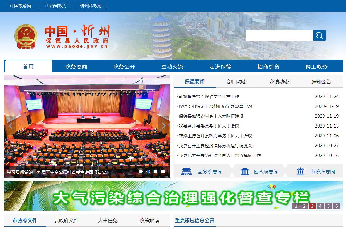 | 網站簡介: 保德縣,隸屬于山西省忻州市,位于山西省西北部,全縣總面積997.5平方公里,屬典型的溫帶大陸性氣候。截至2019年10月,保德縣轄4個鎮(zhèn)、9個鄉(xiāng),另轄1個鄉(xiāng)級單位,截至2016年末,保德縣總人口16.52萬。保德位于晉陜蒙三省交匯,神朔鐵路、朱廟公路、韓府公路、沿黃旅游公路、忻保高速穿境而過,全縣通車里程達1063公里,公路密度達到112公里/百平方公里。2018年9月,保德縣入選2018年電子商務進農村綜合示范縣名單。保德縣境內有飛龍山、陳烈女廟、故城石窟等風景名勝。2017年,保德縣實現地區(qū)生產總值(GDP)86.0311億元,按可比價核算,同比增長6.3%。其中,第一產業(yè)增加值3.4275億元,同比增長4.0%;第二產業(yè)增加值63.0475億元,同比增長7.2%;第三產業(yè)增加值19.5561億元,同比增長4.2%。第一、二、三產業(yè)增加值占地區(qū)生產總值(GDP)的比重分別為3.98%、73.28%、22.74%。 |