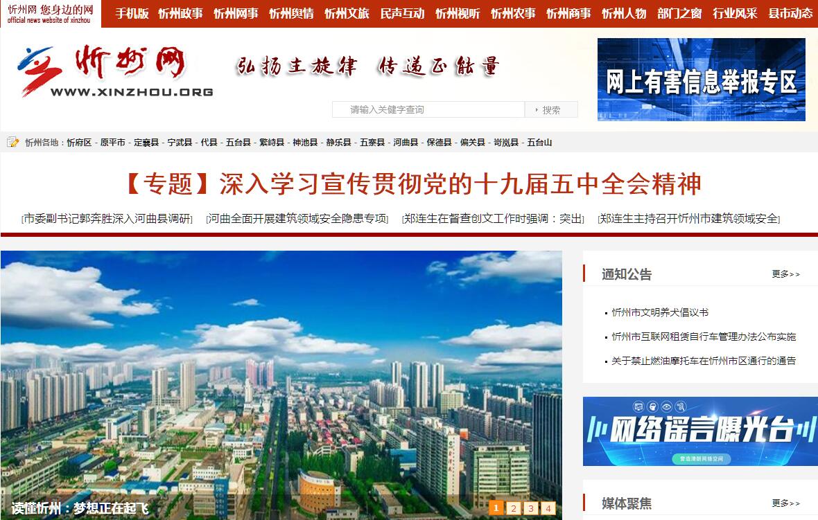 | 網(wǎng)站簡介: 忻州網(wǎng)(www.xinzhou.org或www.xz0350.cn)以“弘揚(yáng)主旋律 傳遞正能量”為理念,以“講好忻州故事,宣傳心靈之舟”為己任。承擔(dān)了宣傳、媒介傳播和公共服務(wù)的多重功能。立足本地,提供包括本地新聞、風(fēng)土人情、政策法規(guī)、經(jīng)濟(jì)狀況、招商引資、生活信息等信息內(nèi)容,宣傳忻州、服務(wù)忻州,發(fā)揮網(wǎng)絡(luò)媒體的作用,全面、及時(shí)、準(zhǔn)確地做好新聞報(bào)道工作。 |