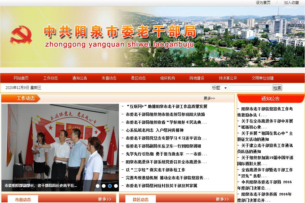 | 網(wǎng)站名稱: | 中共陽泉市委老干部局 | ||
