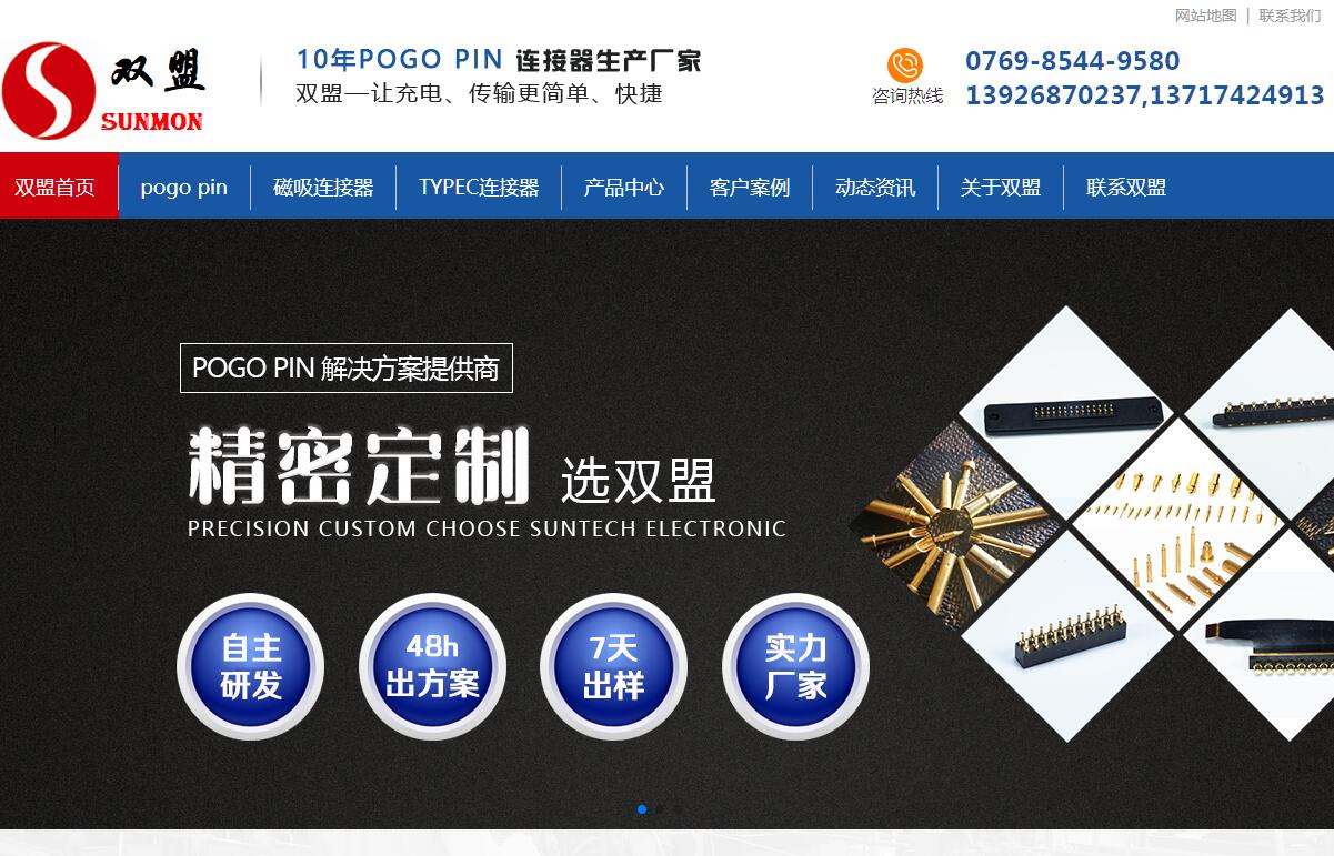 | 網(wǎng)站簡介: 東莞市雙盟電子有限公司以下簡稱[雙盟電子],成立于2009年8月25日,現(xiàn)有員工200人,廠房面積近12000平方米,十余年來專注研發(fā)、生產(chǎn)、銷售POGO PIN彈簧頂針連接器;USB3.1 、TYPEC連接器、TYPE C擴(kuò)展塢、HDMI高清線;專注研發(fā)定制:精密彈簧針磁吸式連接器,精密磁吸式充電線,大電流快充TYPE C充電線。雙盟電子始終堅持以研發(fā)技術(shù)導(dǎo)向為核心,集產(chǎn)品研發(fā)和應(yīng)用服務(wù)于一體,以品質(zhì)為根本,為客戶提供高品質(zhì),高效,具有競爭力的產(chǎn)品和服務(wù)。 |