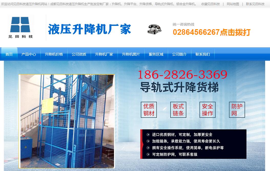 | 網(wǎng)站簡(jiǎn)介: 見田科技是專業(yè)的成都升降機(jī)廠家,主營(yíng):升降機(jī)、液壓升降平臺(tái)、升降貨梯。 |