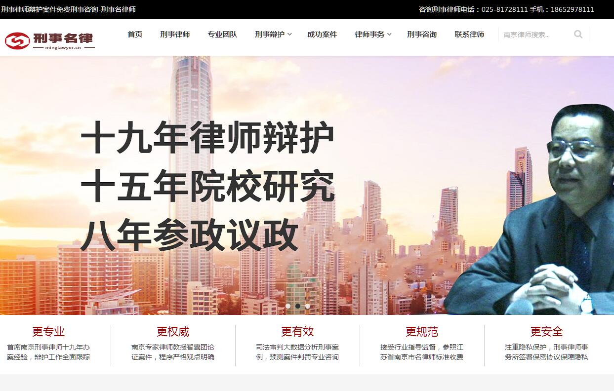 | 網(wǎng)站簡介: 刑事名律師網(wǎng)以南京律師刑事辯護(hù)團(tuán)隊為依托,匯聚精英刑事律師,代理刑事事務(wù),專業(yè)辯護(hù)案件,收費刑事律師咨詢,再審案件申訴辯護(hù)。多起無罪辯護(hù)緩刑成功案例,精細(xì)辯護(hù)效果好。 |