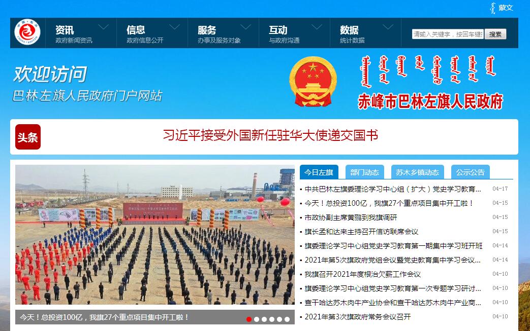 巴林左旗人民政府官方門戶網站。