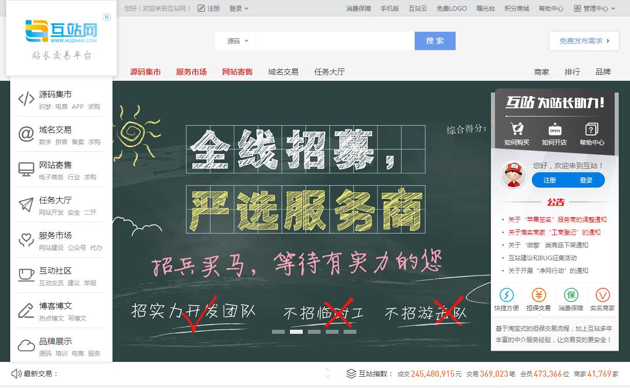 | 網站簡介: 互站網,國內知名的站長交易服務中心;網站交易、源碼交易、域名交易、鏈接交易、廣告買賣、建站美工任務;安全快捷的站長交易、出售、求購、交流分享平臺。 |