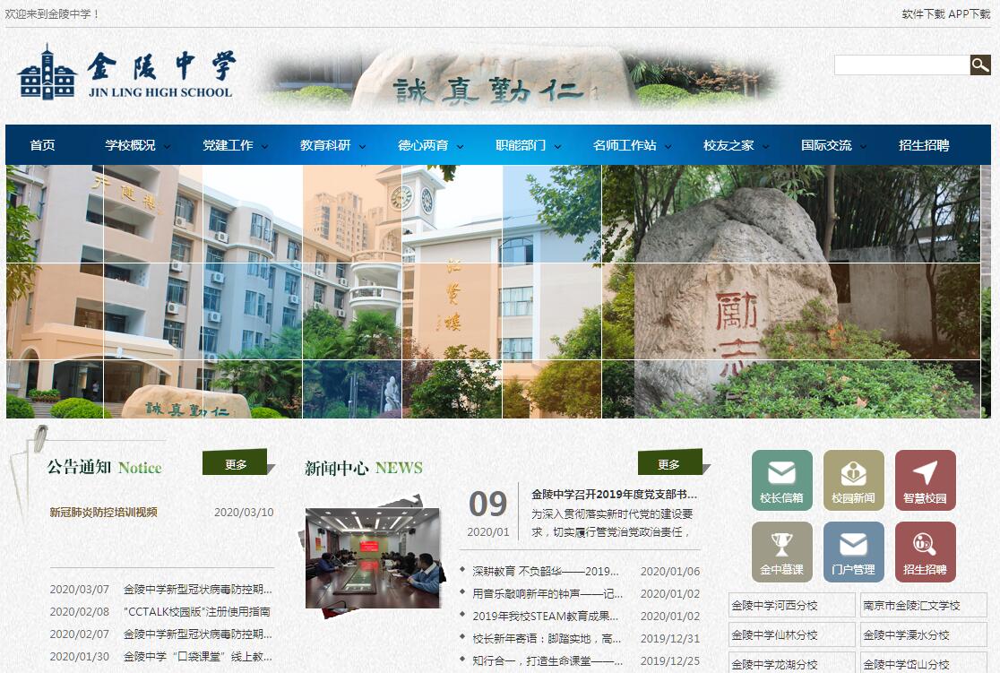 南京市金陵中學(xué)創(chuàng)建于1888年,歷經(jīng)匯文書院(1888年-1910年)、金大附中(1910年-1951年)、南京十中(1951年-1988年)時(shí)期,1988年百年校慶時(shí)更名為南京市金陵中學(xué)。學(xué)?,F(xiàn)為江蘇省首批四星級高中、江蘇省首批普通高中創(chuàng)新拔尖人才培養(yǎng)試點(diǎn)學(xué)校、江蘇省模范學(xué)校、江蘇省德育先進(jìn)學(xué)校、首批國家級示范高中、“宋慶齡少年兒童科技發(fā)明示范基地”、“全國科技創(chuàng)新教育十佳學(xué)校”、“中國青少年機(jī)器人競賽優(yōu)秀學(xué)?!薄⑷珖行W(xué)現(xiàn)代教育技術(shù)實(shí)驗(yàn)學(xué)校、全國體育紅旗學(xué)校、全國群眾體育先進(jìn)集體。學(xué)?,F(xiàn)有特級教師13人、教授級高級教師9人、享受國務(wù)院特殊津貼1人、省人民教育家培養(yǎng)對象1人、省“333工程”培養(yǎng)對象16人,市級學(xué)科帶頭人30人,南京市優(yōu)秀青年教師36人。同時(shí),還外聘在寧教授、博導(dǎo)、院士擔(dān)任兼職教師。一百多年來,學(xué)校培養(yǎng)了近6萬名畢業(yè)生,其中有人民教育家陶行知,中國科學(xué)院原名譽(yù)主席、杰出的工程物理學(xué)家吳仲華,美學(xué)大師宗白華,著名經(jīng)濟(jì)學(xué)家厲以寧、吳敬璉,文史學(xué)家程千帆,建筑大師齊康,諾貝爾文學(xué)獎獲得者高行健,中科院院士、北大副校長田剛,2016年度世界杰出女科學(xué)家鮑哲南等一批科技精英與人文大師。校友中目前獲知的兩院院士有26位。近幾年來,學(xué)校陸續(xù)涌現(xiàn)一批優(yōu)秀畢業(yè)生,如復(fù)旦“十大畢業(yè)生之星”王晨、李睿霖,中科大“郭沫若獎學(xué)金”獲得者毛俊驊、何澤成,被“哈斯普”三大美國名校全額獎學(xué)金保研的葉天揚(yáng)等。在近130年辦學(xué)歷程中,學(xué)校形成了優(yōu)良的教育傳統(tǒng)與辦學(xué)特色,即:人文主義與科學(xué)精神相結(jié)合,嚴(yán)謹(jǐn)治學(xué)與開拓創(chuàng)新相結(jié)合,推崇教師與尊重學(xué)生相結(jié)合,全面發(fā)展與個(gè)性成長相結(jié)合。作為省“首批拔尖創(chuàng)新人才培養(yǎng)試點(diǎn)學(xué)?!保瑢W(xué)校先后與南京大學(xué)、東南大學(xué)聯(lián)合成立“準(zhǔn)博士培養(yǎng)站”和“未來卓越工程師培養(yǎng)基地”,積極探索創(chuàng)新拔尖人才的成長途徑和培養(yǎng)模式。學(xué)校現(xiàn)擁有“以傳感器為載體的物化課程基地”和“以積極心理學(xué)為導(dǎo)向的高中生生涯規(guī)劃課程基地”兩個(gè)省級課程基地。近年來,學(xué)校在高品質(zhì)課程建設(shè)方面取得了顯著成績。2014年,學(xué)校與南京大學(xué)合作的“準(zhǔn)博士培養(yǎng)站建設(shè)”項(xiàng)目榮獲江蘇省教學(xué)成果獎一等獎;2015年,學(xué)校的“研究性學(xué)習(xí)系列研究”榮獲南京市、江蘇省教學(xué)成果獎特等獎和全國教學(xué)成果獎二等獎(南京市唯一中學(xué)獲獎);2016年,學(xué)校被評為南京市首批德育示范基地校、中小學(xué)校長(高中)培訓(xùn)基地校;2017年,江敏老師領(lǐng)銜的、根植于金中生命課堂的《基于科學(xué)本質(zhì)的高中化學(xué)教學(xué)實(shí)踐研究》榮獲江蘇省教學(xué)成果獎特等獎,2017年,孫夕禮校長主持的《對高中生生涯規(guī)劃指導(dǎo)的路徑探索》榮獲江蘇省教學(xué)成果獎一等獎。為促進(jìn)南京市基礎(chǔ)教育的優(yōu)質(zhì)均衡發(fā)展,學(xué)校先后創(chuàng)建了南京市金陵中學(xué)河西分校、南京市金陵匯文學(xué)校、金陵中學(xué)實(shí)驗(yàn)小學(xué)、金陵中學(xué)仙林分校小學(xué)部、中學(xué)部、金陵中學(xué)岱山分校、金陵中學(xué)龍湖分校、金陵中學(xué)高新分校、金陵中學(xué)溧水分校。學(xué)校秉承“誠、真、勤、仁”校訓(xùn),以將學(xué)生培養(yǎng)為“以誠為本、唯真求是、勤勉執(zhí)著、以仁為懷”的現(xiàn)代人為培養(yǎng)目標(biāo),踐行“為學(xué)生一生奠基、對民族未來負(fù)責(zé)”的辦學(xué)理念,恪守“讓課堂充滿生命的活力,讓校園煥發(fā)綠色的生機(jī),讓環(huán)境放射人文的光芒”的教育主張。在傳承學(xué)校百年優(yōu)良辦學(xué)傳統(tǒng)基礎(chǔ)上,孫夕禮校長倡導(dǎo)的“開放辦學(xué)、科學(xué)管理、內(nèi)涵發(fā)展、張弛有度、自由成長”的金陵中學(xué)教育生態(tài)正逐步形成。
