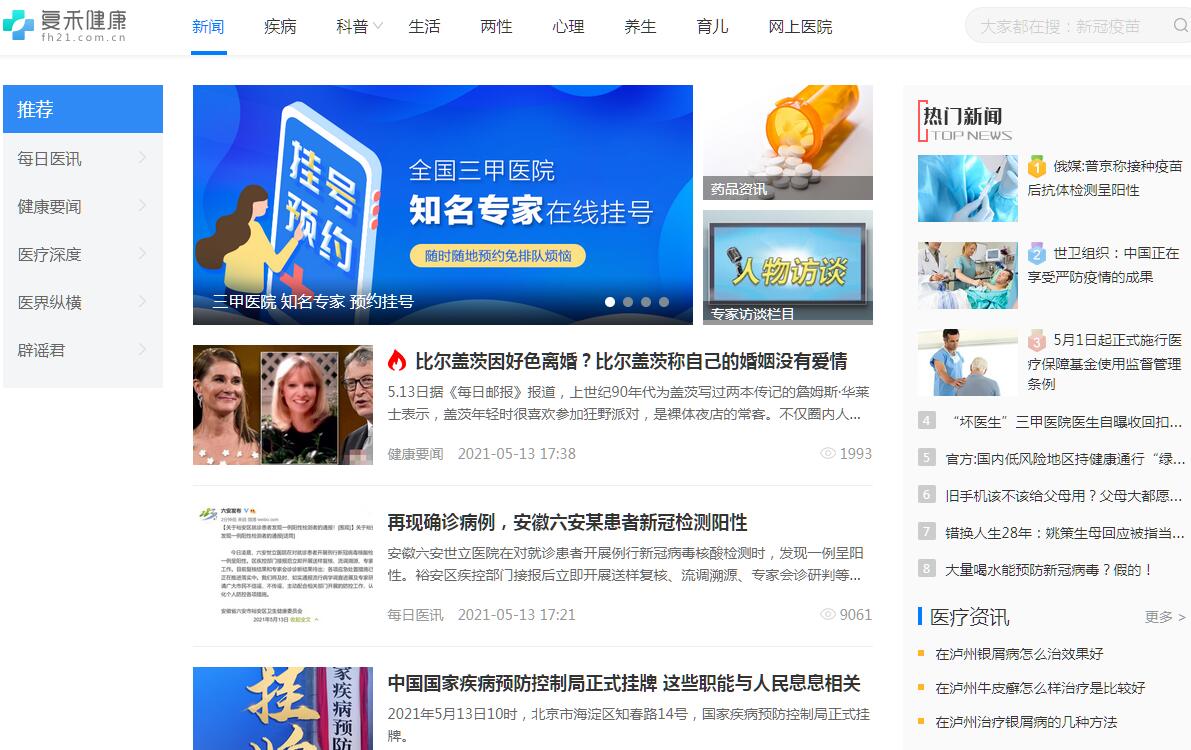 | 網(wǎng)站簡介: 復(fù)禾健康新聞頻道為廣大網(wǎng)民提供醫(yī)療行業(yè)最新資訊,追蹤健康焦點事件,報道專業(yè)醫(yī)療科研成果,解讀醫(yī)療公共政策,辟謠錯誤醫(yī)學信息,為廣大民眾提供專業(yè)權(quán)威的健康信息。 |