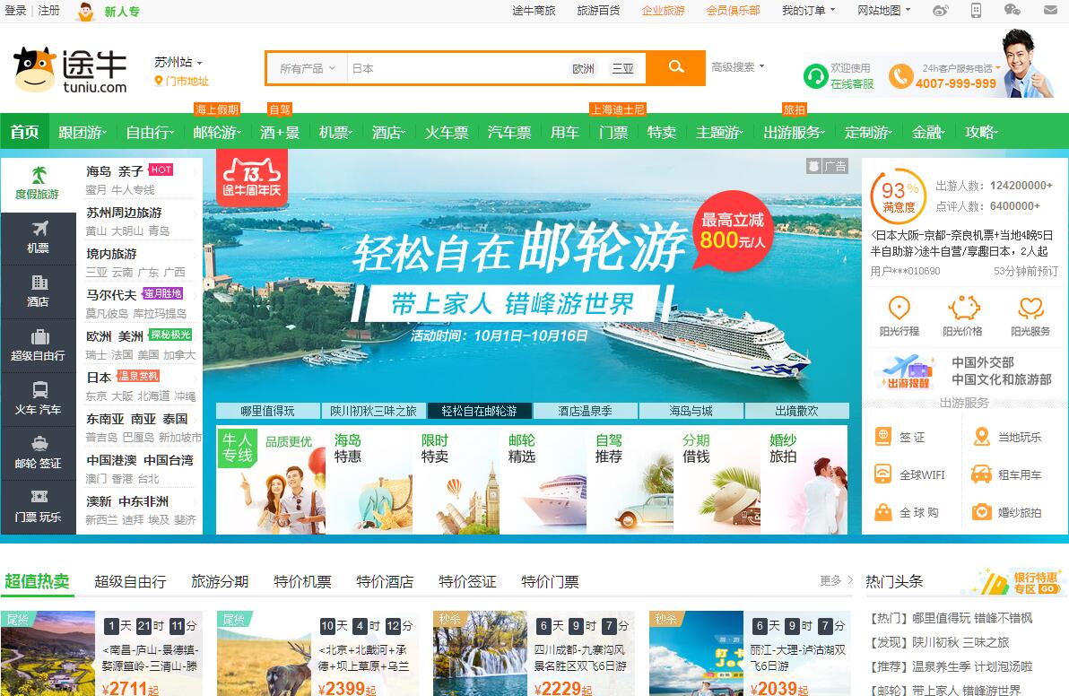 途牛旅游網(wǎng)創(chuàng)立于2006年10月,以“讓旅游更簡單”為使命,為消費(fèi)者提供由北京、上海、廣州、深圳等180個(gè)城市出發(fā)的旅游產(chǎn)品預(yù)訂服務(wù),產(chǎn)品全面,價(jià)格透明,全年365天24小時(shí)400電話預(yù)訂,并提供豐富的后續(xù)服務(wù)和保障。目前,途牛旅游網(wǎng)提供100萬余種旅游產(chǎn)品供消費(fèi)者選擇,涵蓋跟團(tuán)、自助、自駕、郵輪、酒店、簽證、景區(qū)門票以及公司旅游等,已成功服務(wù)累計(jì)超過1500萬人次出游。同時(shí)基于途牛旅游網(wǎng)全球中文景點(diǎn)目錄以及中文旅游社區(qū),可以更好地幫助游客了解目的地信息,妥善制定好出游計(jì)劃,并方便地預(yù)訂旅程中的服務(wù)項(xiàng)目。途牛旅游網(wǎng)提供跟團(tuán)游、自助游、郵輪旅游、自駕游、定制游以及景點(diǎn)門票預(yù)訂、機(jī)票預(yù)訂、火車票預(yù)訂服務(wù),還有牛人專線、首付出發(fā)旅游等品質(zhì)高端、價(jià)格實(shí)惠的旅游路線.全年有各種尾貨特價(jià)、限時(shí)秒殺等特賣旅游路線讓你暢游海內(nèi)外,要旅游,找途牛.