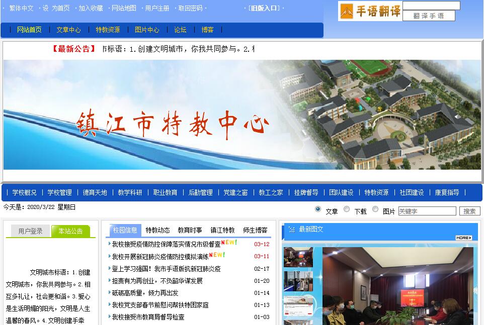 我校原為“私立勝天聾啞學(xué)?!?,創(chuàng)建于1937年,1952年改為公辦,更名為“鎮(zhèn)江市聾啞學(xué)?!薄?995年9月成立“鎮(zhèn)江市特教中心”,1997年職業(yè)先修中學(xué)掛牌,2002年9月,原潤州輔讀學(xué)校并入我校,目前已發(fā)展成聾弱一體(集聾教育、弱智教育為一體)的綜合型特殊教育學(xué)校,其中,聾教育由學(xué)前教育、義務(wù)教育、高級中等教育(含職業(yè)教育)組成,學(xué)制15年,為政府、社會構(gòu)筑了聾教育從學(xué)前到高中的完整的教育體系,初步適應(yīng)了我市聾人不斷增長的教育需;弱智教育為初級職業(yè)教育和高中職業(yè)教育,學(xué)制6年。全?,F(xiàn)有57名教職員工,16個教學(xué)班,學(xué)生137人。學(xué)校占地14675平方米,建筑面積4648.24平方米,綠化面積5185平方米。一直以來,全校師生以自強不息的精神風(fēng)貌,以博愛的情懷,形成了“奉獻大愛、追求卓越”的學(xué)校精神,確立了建設(shè)“功能齊全、內(nèi)涵豐富、特色鮮明的省級示范學(xué)?!睘榘l(fā)展目標,本著“以人為本、化弱為常,持續(xù)發(fā)展”為辦學(xué)宗旨,積極探索殘疾學(xué)生“一證多技”和特教老師“一專多能”的師生培養(yǎng)和發(fā)展模式,努力構(gòu)建和諧校園。特別是近幾年來,學(xué)校各項事業(yè)有了快速發(fā)展,逐步形成了較為鮮明的辦學(xué)特色,學(xué)校的綜合辦學(xué)水平在全國享有一定聲譽,先后獲得“全國特殊教育先進單位”、“全國三八紅旗集體”、“江蘇省精神文明建設(shè)工作先進單位”、“江蘇省文明學(xué)校”、“江蘇省特殊育現(xiàn)代化師范學(xué)校”、“江蘇省健康促進學(xué)校銀獎”等多個榮譽稱號。今后,我們將把學(xué)校建設(shè)成為名副其實的功能齊全、內(nèi)涵豐富、特色鮮明的江蘇省特殊教育現(xiàn)代化示范學(xué)校,特別在學(xué)校管理、教學(xué)質(zhì)量、科研能力等方面在省內(nèi)處于領(lǐng)先地位,辦學(xué)業(yè)績和特色在全國形成一定影響。逐步構(gòu)建完善我校從學(xué)前到高中職業(yè)教育的特殊教育體系,全面提升教育教學(xué)質(zhì)量,努力辦好讓人民滿意的特殊教育學(xué)校,為鎮(zhèn)江教育事業(yè)的均衡發(fā)展,為建設(shè)和諧鎮(zhèn)江做出應(yīng)有的貢獻。