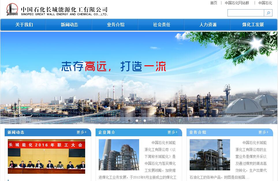 | 網(wǎng)站簡介: 中國石化長城能源化工有限公司(以下簡稱長城能化)是中國石化為落實煤化工發(fā)展戰(zhàn)略,加快推進煤化工業(yè)務(wù)發(fā)展,于2012年8月注冊成立的煤化工專業(yè)公司。長城能化是中國石化股份公司的全資子公司,業(yè)務(wù)歸口化工事業(yè)部管理與指導(dǎo),定位為煤化工業(yè)務(wù)投資的平臺,負責煤化工項目投資和運營,組織協(xié)調(diào)煤化工項目建設(shè),對煤化工企業(yè)實施專業(yè)化管理。 |
