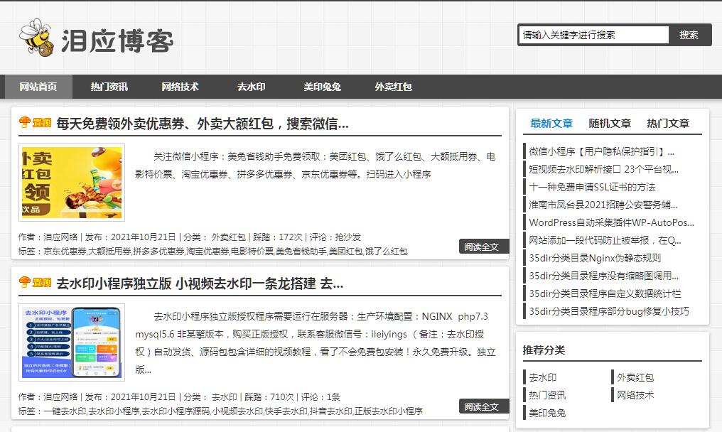 | 網(wǎng)站簡介: 淚應博客,是一個專注于分享熱門互聯(lián)網(wǎng)資訊、網(wǎng)絡技術教程、網(wǎng)絡營銷推廣、網(wǎng)站建設技術及自媒體網(wǎng)賺項目等資源的自媒體博客。 |