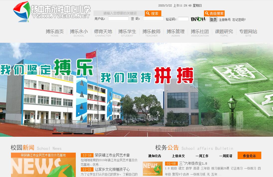 我校創(chuàng)建于1928年,今年恰好90周年,前身是揚中縣永勝鄉(xiāng)玉皇廟初級小學,1951年更名為永勝中心校,1982年搬遷至現(xiàn)址,占地10500平方米,建筑面積為2920平方米?,F(xiàn)有學生135人,教學班級6個,單軌,教職工30人,專任教師26人,其中研究生學歷2人,本科學歷20人,本科在讀2人,大專學歷2人,教師學歷達標率為100%,本科學歷達標率為92.3%,鎮(zhèn)江市學科帶頭人1人,揚中市學科帶頭人1人,鎮(zhèn)江市骨干教師1人,揚中市骨干教師1人,學校各專用教室齊全,教育裝備達到?、耦悩藴?。學校先后獲得 “江蘇省德育工作先進學?!?、 “江蘇省校園詩教先進單位”、 “鎮(zhèn)江市教育現(xiàn)代化先進學校”、 “鎮(zhèn)江市特色1類學?!?、 “鎮(zhèn)江市藝術特色學?!保ú菟嚕┑葮s譽稱號。學校男女排球隊先后二十余次參加鎮(zhèn)江、揚中市級比賽,多次獲冠、亞軍。學校先后培養(yǎng)出了世界著名化學家李巧英,江蘇省警官學院院長吳躍章,著名醫(yī)學家范欽和等許多知名校友。