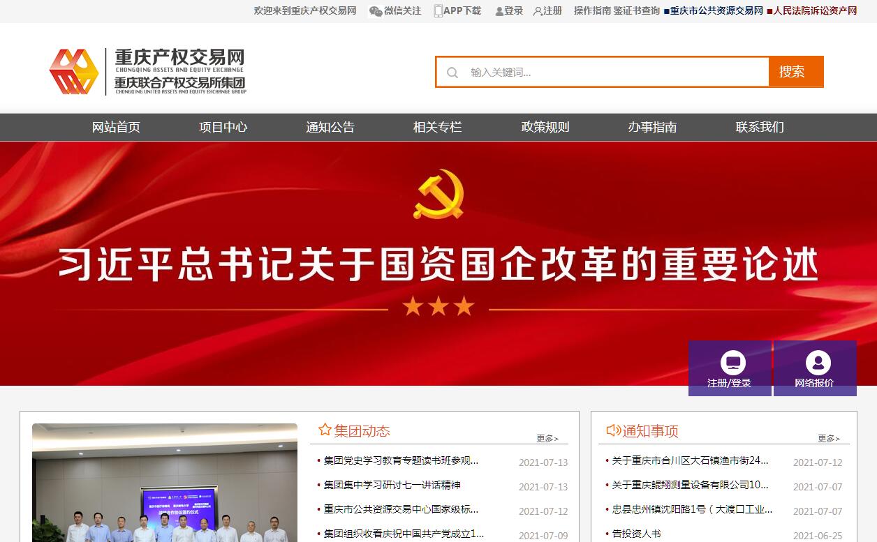 | 網(wǎng)站簡介: 重慶聯(lián)合產(chǎn)權(quán)交易所官方網(wǎng)站。 |