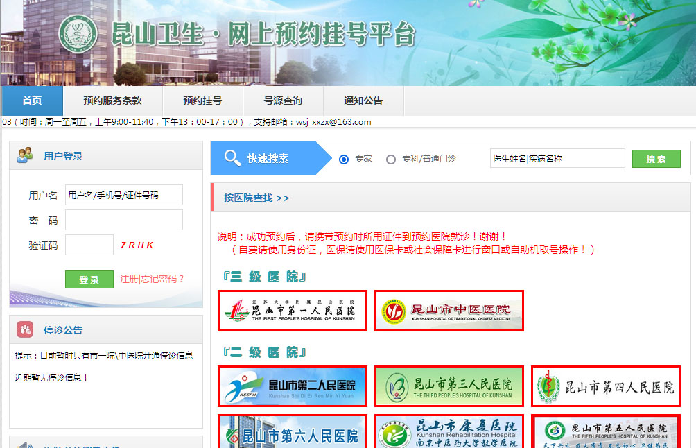 | 網(wǎng)站名稱: | 昆山市衛(wèi)健委網(wǎng)上預(yù)約掛號平臺(tái) | ||